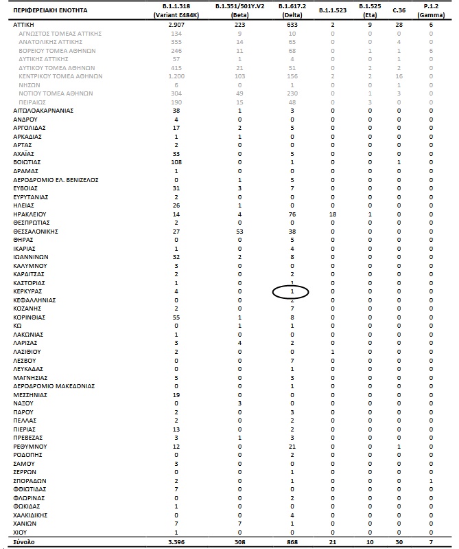 Αύξηση 61% των κρουσμάτων με μετάλλαξη Δ σημειώθηκε τις προηγούμενες 4 εβδομάδες, ενώ εντοπίστηκε και το πρώτο κρούσμα στην Κέρκυρα.