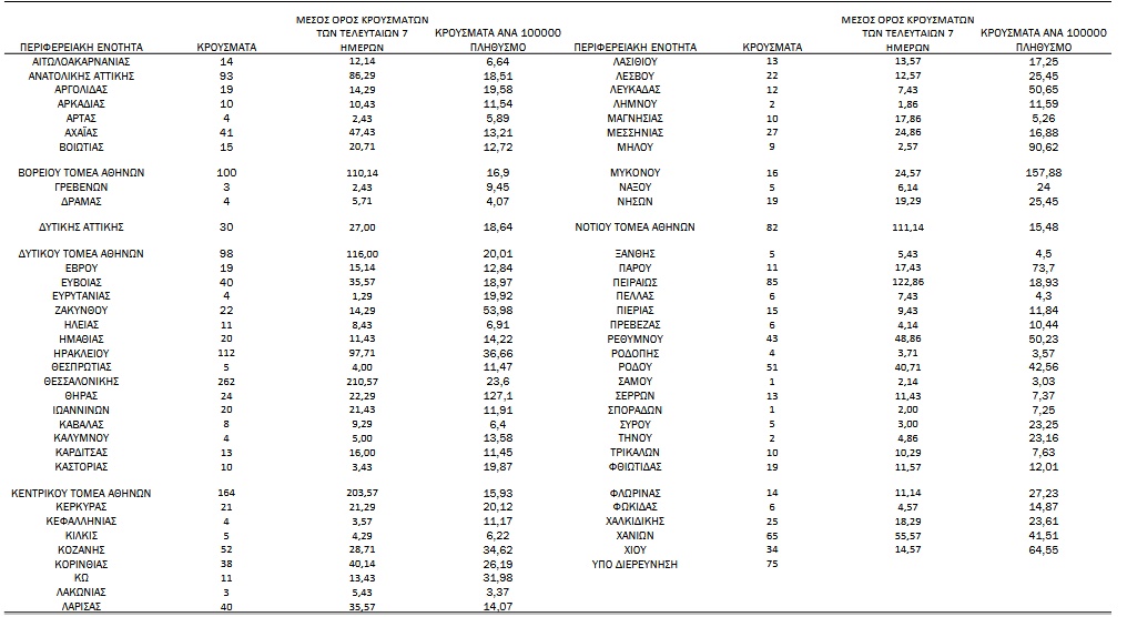 Αναλυτικά, η διασπορά των νέων κρουσμάτων ανά περιφερειακή ενότητα: