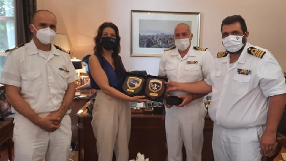 Τη Δήμαρχο Κεντρικής Κέρκυρας και Διαποντίων Νήσων επισκέφθηκαν την Τετάρτη οι κυβερνήτες της φρεγάτας «Ύδρα» και του αρματαγωγού «Προμηθεύς» τα οποία ελλιμενίστηκαν στο λιμάνι του νησιού μας σε προγραμματισμένο ταξίδι τους για την εκπαίδευση των ναυτικών δοκίμων. Η Δήμαρχος δήλωσε ότι είναι τιμή για την Κέρκυρα να περιληφθεί στο εκπαιδευτικό ταξίδι της Σχολής Ναυτικών Δοκίμων και ανέφερε ότι η φρεγάτα «Ύδρα» και το Πλοίο Γενικής Υποστήριξης «Προμηθεύς» κοσμούν το λιμάνι μας. Από την πλευρά τους οι δύο κυβερνήτες χαρακτήρισαν την Κέρκυρα σημαντικό στρατηγικό νησί με ιδιαίτερη αξία. Στη συζήτηση έγινε αναφορά στη ναυτική ιστορία του τόπου μας αλλά και στην αντιμετώπιση της πανδημίας ενώ οι δύο πλευρές αντάλλαξαν αναμνηστικά δώρα. Σημειώνεται ότι το Πλοίο Γενικής Υποστήριξης «Προμηθεύς» έχει τη δυνατότητα συνδρομής των υπηρεσιών πολιτικής προστασίας σε περιπτώσεις ανθρωπιστικών καταστροφών και καταστάσεων εκτάκτου ανάγκης.