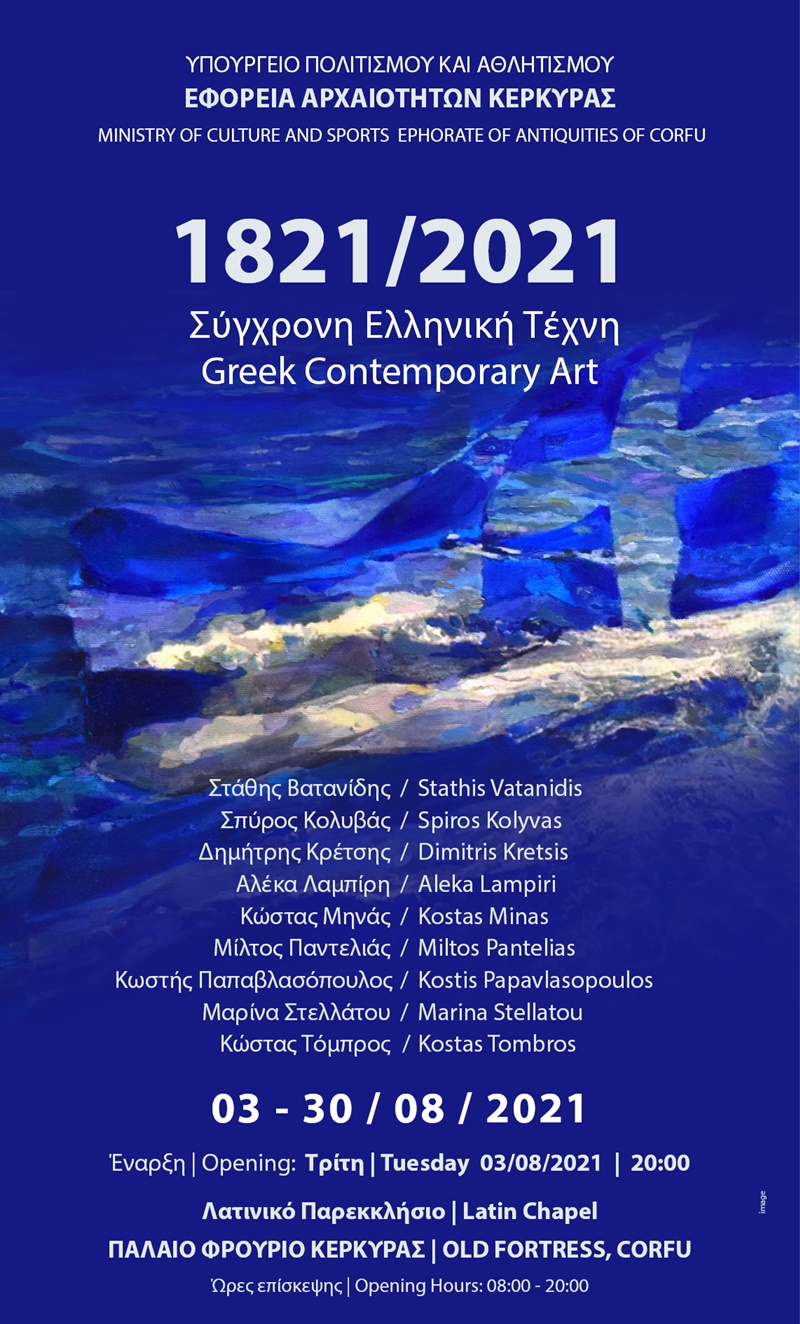 Την Τρίτη, 3 Αυγούστου στις 20:00, εγκαινιάζεται στο Λατινικό Παρεκκλήσιo του Παλαιού Φρουρίου, η ομαδική έκθεση ζωγραφικής “1821/2021 Σύγχρονη Ελληνική Ζωγραφική”, η οποία εντάσσεται στον εορτασμό της επετείου από τα 200 χρονια της Ελληνικής Επανάστασης. Εννέα εικαστικοί δημιουργοί περιγράφουν και ερμηνεύουν την σημασία της Ελληνικής Επανάστασης, την αναμέτρησή της με τον χρόνο ως διαρκούς παραγωγής ιδεών και αισθημάτων, ως αναγνώρισης και πηγής έμπνευσης της ελληνικότητας, καταθέτοντας στο πεδίο της ζωγραφικής τις διαφορετικές αισθητικές επιλογές τους, την ποικιλία των μέσων και των τρόπων, την ιδιαιτερότητα και δεξιοτεχνία τους. Προσωπογραφίες πρωταγωνιστών της Επανάστασης καθώς και της πρώτης περιόδου ύπαρξης του Ελληνικού Κράτους, σκηνές ιστορικών γεγονότων, αποδόσεις συμβόλων και παραδόσεων συναντώνται και συνομιλούν με αφορμή την Επέτειο, με θέαση και αναφορά το ευρύ πεδίο της “πατρίδας” .