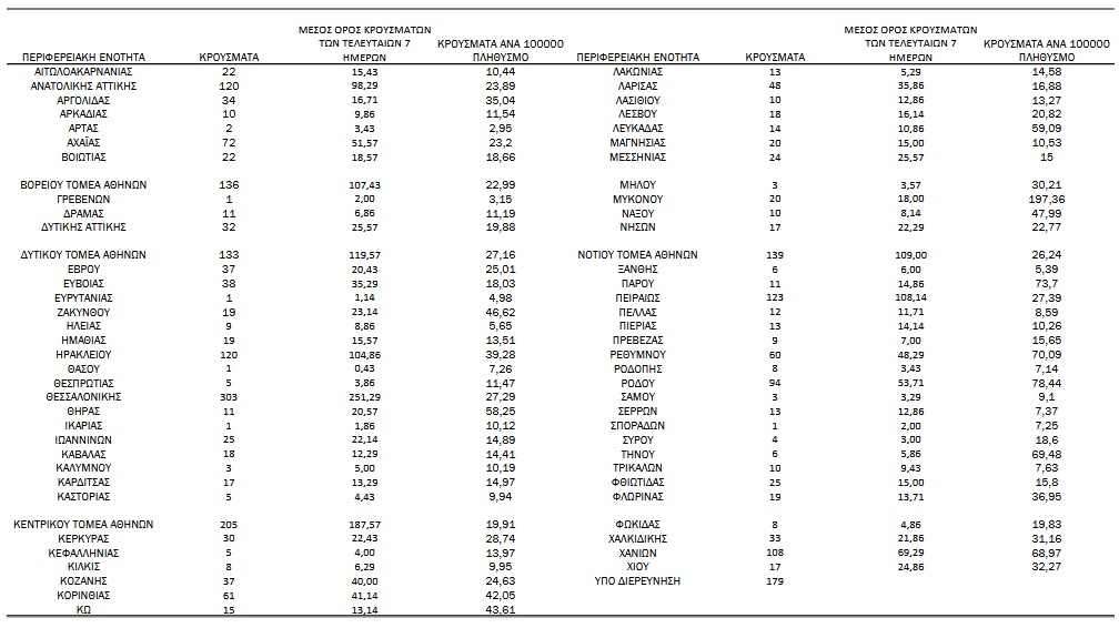 Αναλυτικά, η διασπορά των νέων κρουσμάτων ανά περιφερειακή ενότητα:
