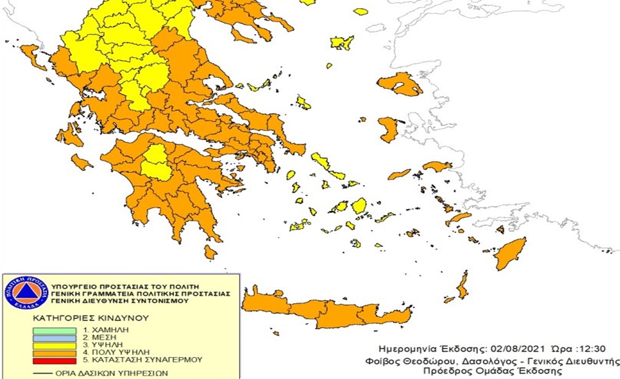 Σύμφωνα με το Χάρτη Πρόβλεψης Κινδύνου Πυρκαγιάς που εκδίδει η Γενική Γραμματεία Πολιτικής Προστασίας (www.civilprotection.gr), για την Τρίτη 03/08/2021, προβλέπεται πολύ υψηλός κίνδυνος πυρκαγιάς (κατηγορία κινδύνου 4) για την Περιφερειακή Ενότητα Κέρκυρας.