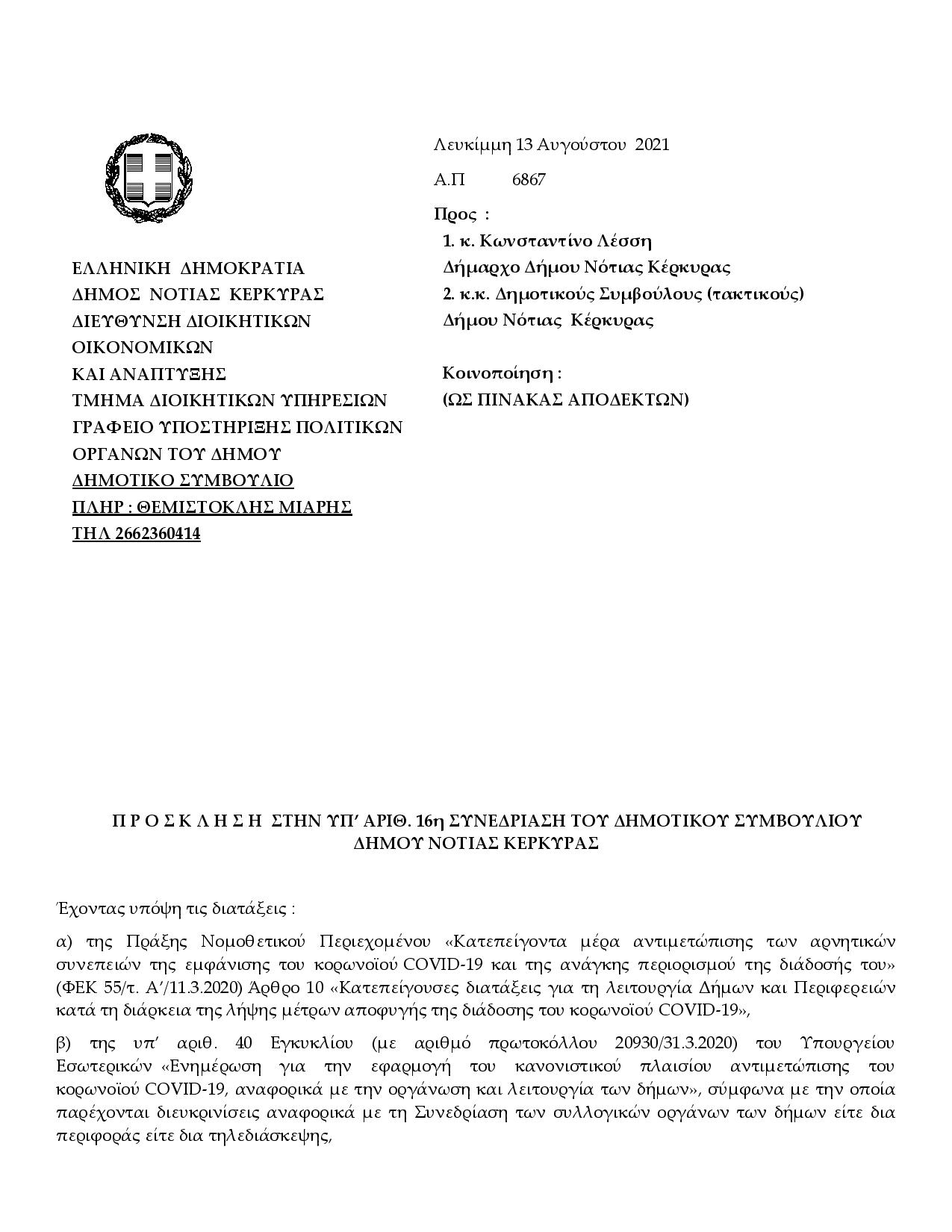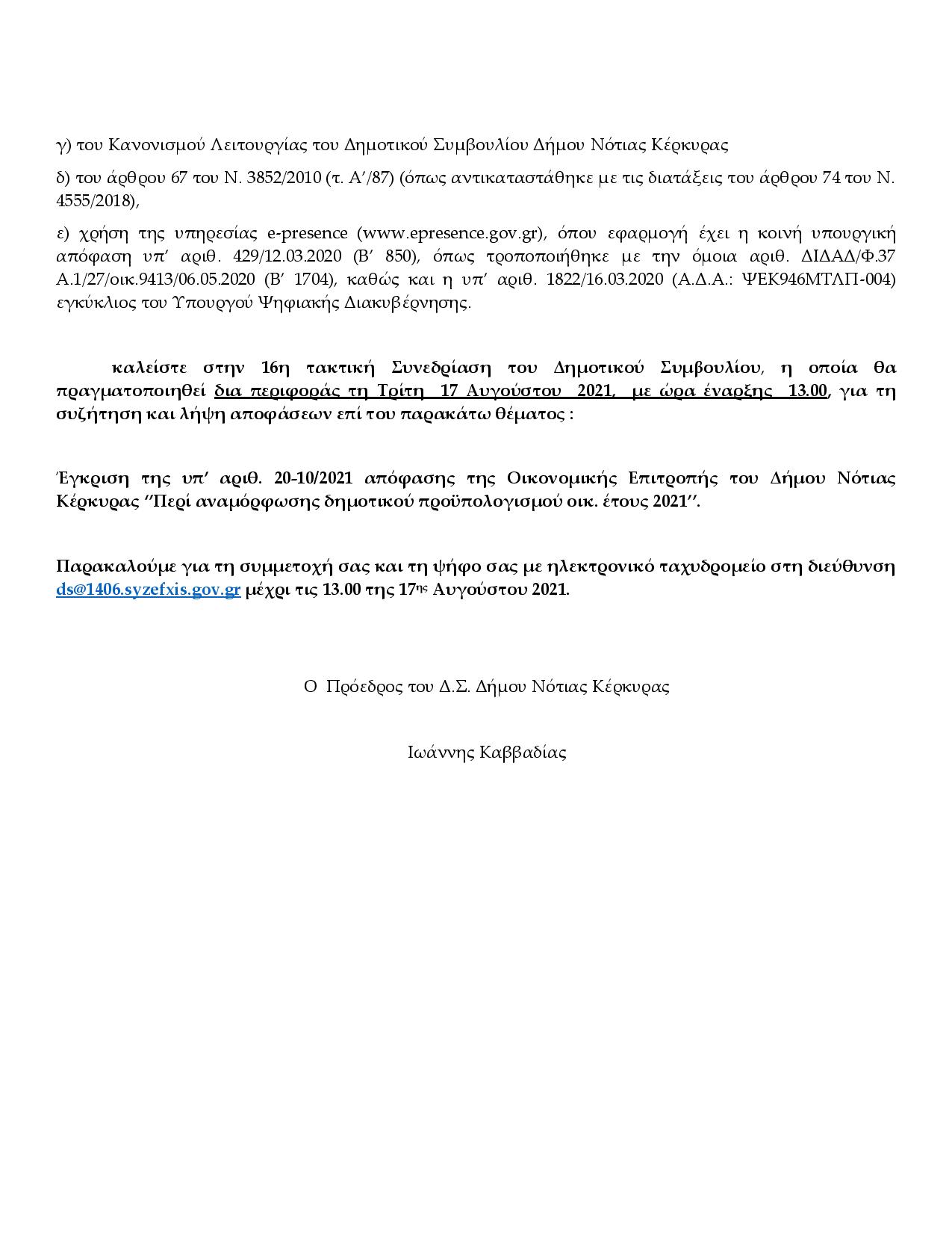Η συνεδρίαση θα πραγματοποιηθεί δια περιφοράς την Τρίτη 17 Αυγούστου.