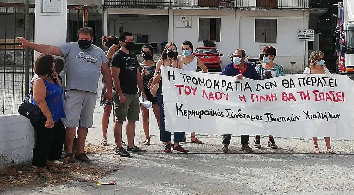 Την Τετάρτη 11 Αυγούστου, μέλη του Κερκυραϊκού Συνδέσμου Ιδιωτικών Υπαλλήλων έχοντας στο πλευρό τους συναδέλφους από άλλα Σωματεία που συσπειρώνονται στο Π.Α.ΜΕ., όπως από τον Σύνδεσμο Ξενοδοχοϋπαλλήλων, Εργαζομένων Επισιτισμού Τουρισμού, πραγματοποίησαν παράσταση διαμαρτυρίας έξω από τις εγκαταστάσεις της μεταφορικής εταιρείας “ΑΞΟΝΑΣ Α.Ε.” στην Αλεπού, ως μια πρώτη απάντηση στην απόλυση συναδέλφου μέλους εκλεγμένου συνδικαλιστή.