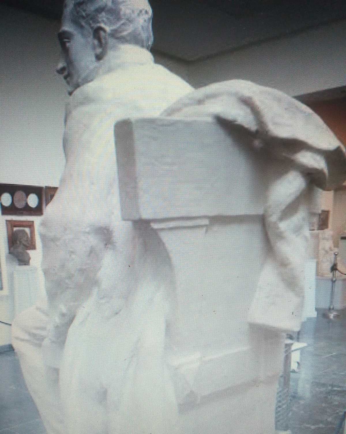Έτσι, ο Καποδίστριας αποδίδεται με το κεφάλι σε αρκετά έντονη στροφή αριστερά και με τον άνω κορμό να κάμπτεται με σχετική ορμή εμπρός.