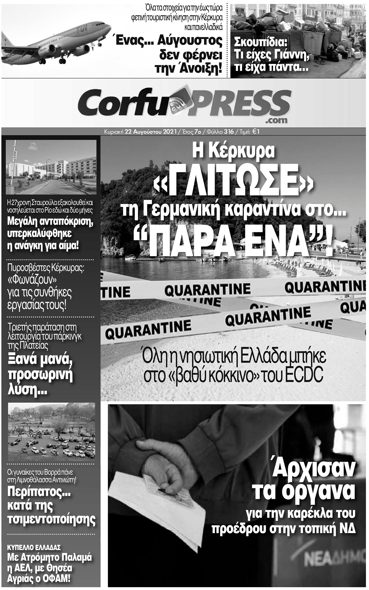 -H Kέρκυρα “γλίτωσε” τη Γερμανική καραντίνα στο…”ΠΑΡΑ ΕΝΑ”