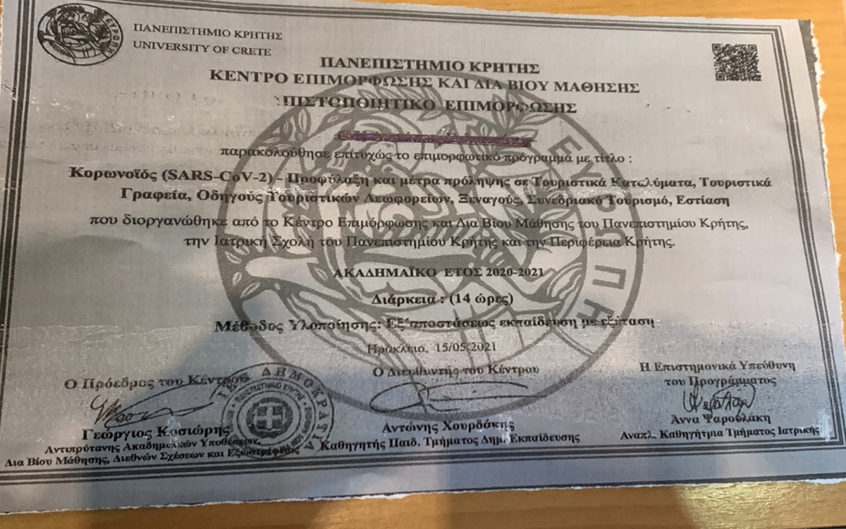 Δεν υπάρχει καμία σύγκριση με άλλες Περιφέρειες ανάλογου τουριστικού προφίλ, όπως για παράδειγμα η Κρήτη, όπου από τις 15/5/2021 είχαν χορηγηθεί τα πιστοποιητικά συμμετοχής στην κατάρτιση!