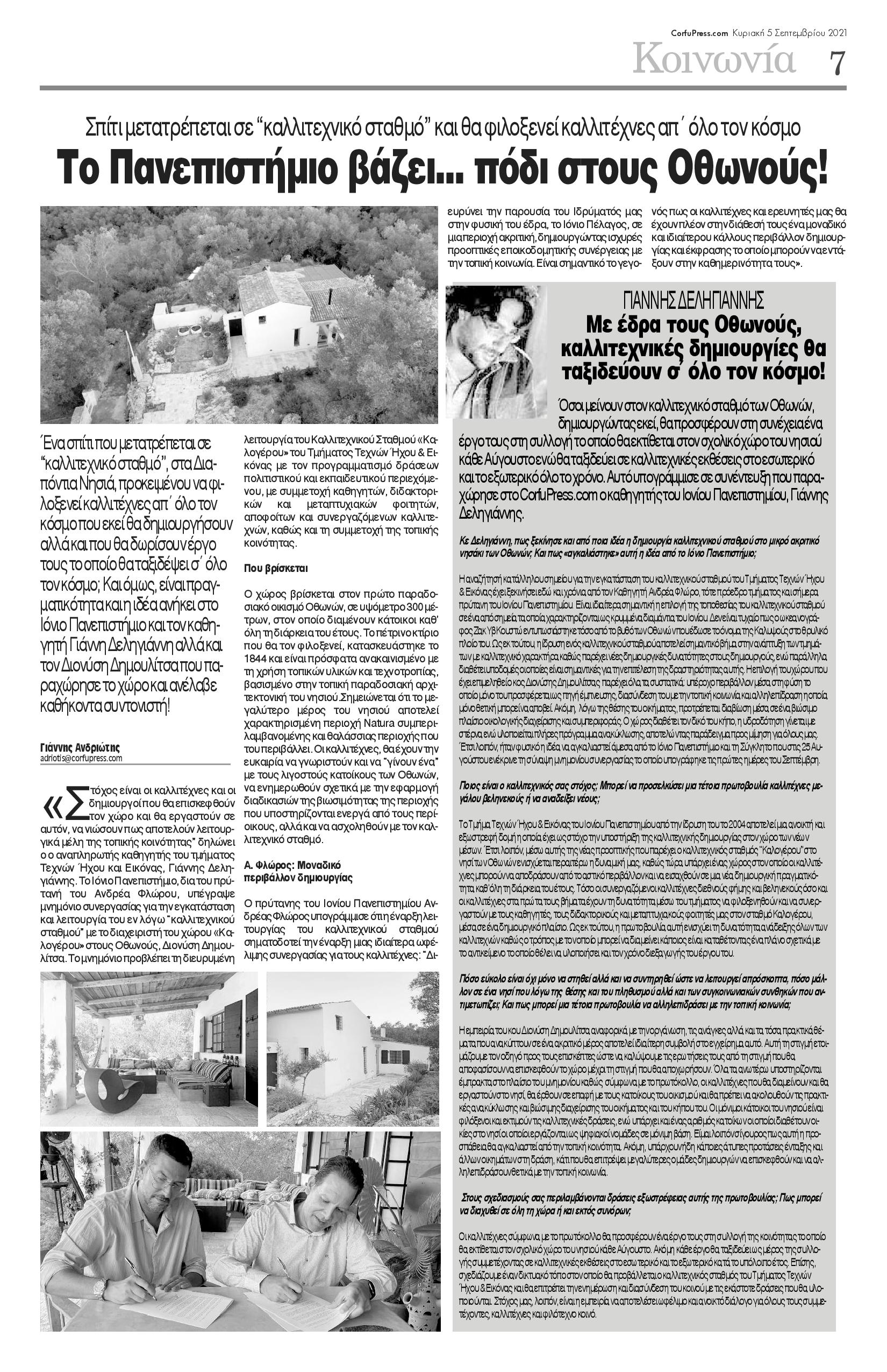 *Στην έντυπη CorfuPress.com της Κυριακής 5/9/21 μπορείτε να διαβάσετε και συνέντευξη του καθηγητή Γιάννη Δεληγιάννη σχετικά με τον “καλλιτεχνικό σταθμό” στους Οθωνούς.