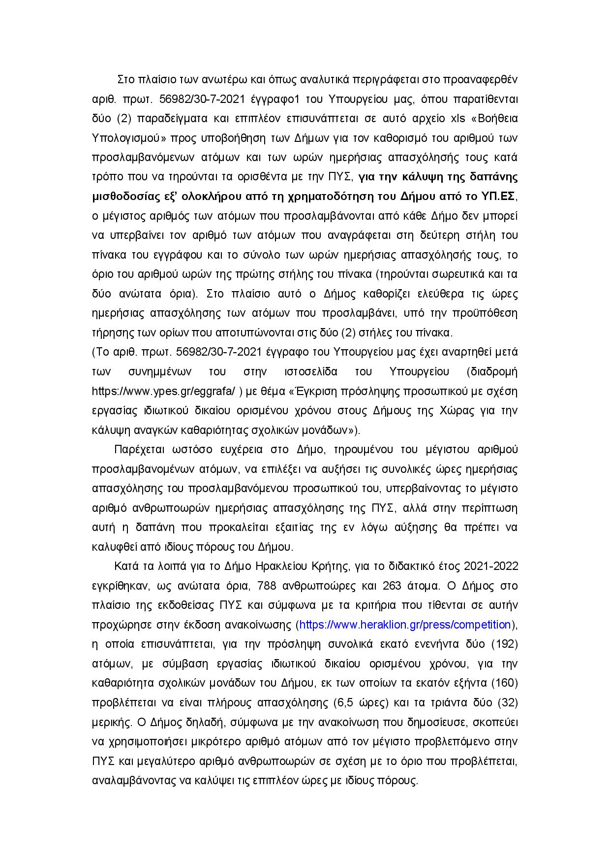 Ύστερα από την ερώτηση, μας απεστάλη η υπ’αριθμ. ΤΚΕ/Φ.2/17026 /2021 Απάντηση, την οποία υπογράφει ο Υπουργός Εσωτερικών. Το Υπουργείο έριξε τις ευθύνες στην ανελαστικότητα της γραφειοκρατίας (!!) και επέλεξε να κάνει μόνο γενικές αναφορές για την επιλογή να αυξηθεί ο αριθμός των εργαζομένων στην καθαριότητα των σχολικών μονάδων, αλλά να μειωθούν οι ώρες εργασίας. Παραμένουν τα εύλογα ερωτηματικά για το πως θα διατηρηθεί η αξιοπρεπής διαβίωση των σχολικών καθαριστών/στριων, που ως επί το πλείστον, ανήκουν σε ευαίσθητες κοινωνικές ομάδες του πληθυσμού, ενώ ο ενδεχόμενος πλημμελής καθαρισμός των σχολικών μονάδων, εν μέσω έξαρσης της πανδημίας, θα έχει ολέθρια αποτελέσματα για τη διασπορά του ιού.