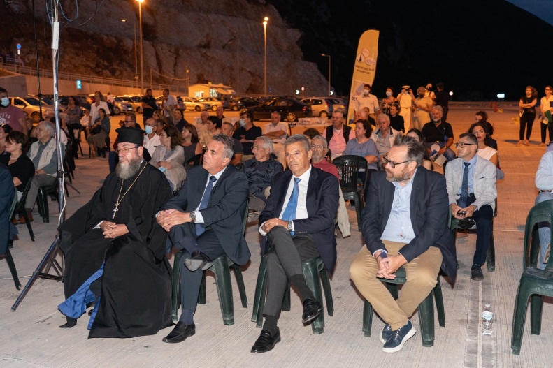 Την εκδήλωση άνοιξε η Περιφερειάρχης Ιονίων Νήσων κ. Ρόδη Κράτσα-Τσαγκαροπούλου, ενώ εκτός του Γ.Γ., χαιρέτισαν ο βουλευτής Κεφαλονιάς-Ιθάκης Παναγής Καππάτος, οι πρώην Περιφερειάρχες κκ Σπ. Σπύρου και Θεοδ. Γαλιατσάτος οι οποίοι διαχειρίστηκαν το έργο κατά την ένταξη και κατασκευή του, ο πρώην Δήμαρχος Ιθάκης κ. Γιώργος Βασιλόπουλος ενώ ο Έπαρχος Ιθάκης Αθαν. Λιβιτσάνης και ο Δήμαρχος Ιθάκης Διονύσιος Στανίτσας αναφέρθηκαν στα οφέλη του έργου στην τοπική κοινωνία και οικονομία. Χαιρέτισαν ακόμα ο αρχιερατικός επίτροπος Ιθάκης π. Χριστόδουλος Τριλίβας και ο αντιπρόεδρος του Διαδημοτικού Λιμενικού Ταμείου Κεφαλονιάς Ιθάκης, κ. Μ. Μοσχονάς.