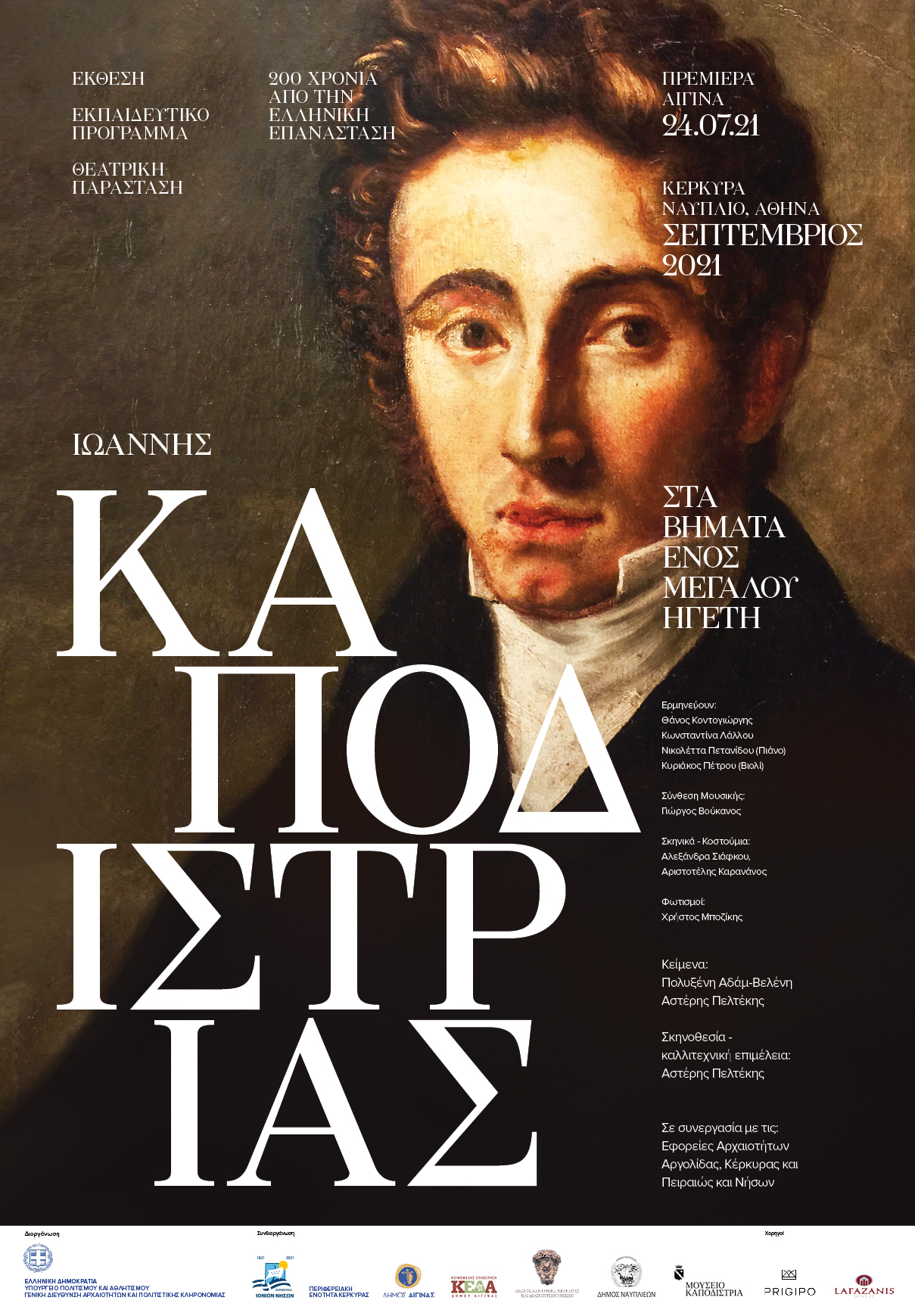 Πρόκειται για συγγραφή πρωτότυπου θεατρικού κειμένου που αφορά στη ζωή και τη δράση του πρώτου ηγέτη της Ελλάδας Ιωάννη Καποδίστρια. Αποτελεί παραγωγή της Γενικής Διεύθυνσης Αρχαιοτήτων και Πολιτιστικής Κληρονομιάς και συνδυάζεται με τη διοργάνωση περιοδεύουσας έκθεσης για τον Ιωάννη Καποδίστρια καθώς και με εκπαιδευτικό πρόγραμμα για τη δευτεροβάθμια εκπαίδευση με το ίδιο θέμα. Ουσιαστικά, το θεατρικό έργο κλείνει τον κύκλο του συγκεκριμένου project που απαρτίζεται από τρία διαφορετικά, αλλά και ενιαία στη θεματική τους κομμάτια. Το τρίτο μέρος αυτού του ενιαίου project (θεατρικό έργο) συνιστά ένα δραματοποιημένο «εκπαιδευτικό πρόγραμμα ενηλίκων» για τον Ιωάννη Καποδίστρια.