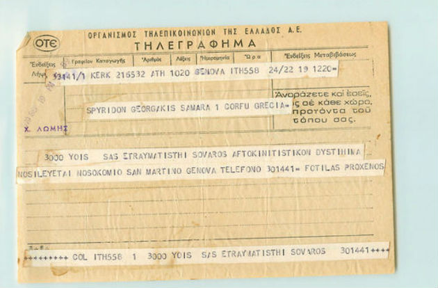 Αργότερα μέσα στην ημέρα ήρθε και το τηλεγράφημα από το προξενείο μας, της Γένοβας: