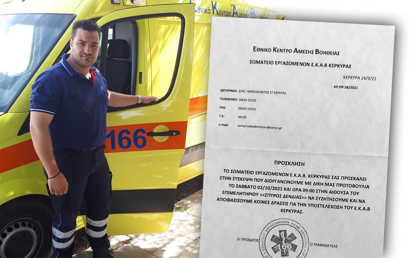 “Να συζητήσουμε και να αποφασίσουμε για κοινές δράσεις για την υποστελέχωση του ΕΚΑΒ Κέρκυρας”, αναφέρουν στην πρόσκλησή τους, με “ραντεβού” στις 9 το πρωί του Σαββάτου 2 Οκτωβρίου, όπως αναφέρεται στην ανακοίνωση.