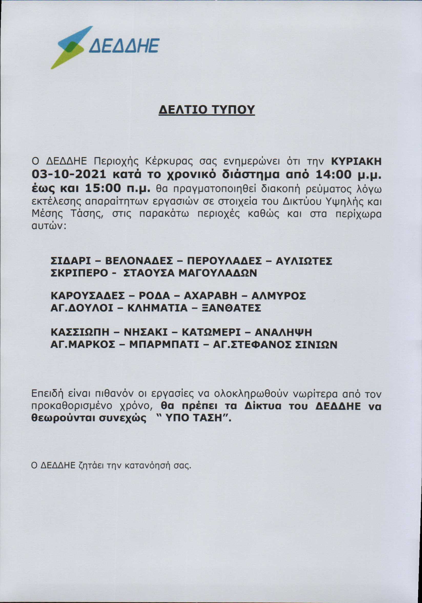 ΚΟΙΝΩΝΙΑΕΛΕΥΘΕΡΟΕΙΔΗΣΕΙΣ Νέες διακοπές ρεύματος σε όλη τη βόρεια Κέρκυρα Οι διακοπές θα πραγματοποιηθούν την Κυριακή, μεταξύ δύο και τρεις το μεσημέρι. Last updated: 01/10/2021 15:27 CorfuPress.com Published: 01/10/2021 Share SHARE Οι διακοπές θα πραγματοποιηθούν την Κυριακή, μεταξύ δύο και τρεις το μεσημέρι. Γκερέκου: Η Παλαιά έστησε μια γέφυρα από το Ιόνιο μέχρι την Ακρόπολη Απεργούν οι ναυτεργάτες την 1η Οκτωβρίου Η Παλαιά στο Ηρώδειο: Ήταν κάτι πολύ περισσότερο από μία συναυλία (pics) Διακομιδή 44χρονης από την Κέρκυρα Ιόνιο Πανεπιστήμιο: Τη Δευτέρα, η εναρκτήρια συνάντηση του έργου HELIX-SMART Share This Article Facebook Whatsapp Whatsapp Email Copy Link Print Previous Article ΑΔΕΔΥ: Καταγγέλλει τις μεθοδευμένες στοχοποιήσεις εργαζομένων και τις συνδικαλιστικές διώξεις Next Article Η Επτανησιακή Πρωτοβουλία για την Παγκόσμια Ημέρα Τρίτης Ηλικίας Δεν υπάρχουν Σχόλια Δεν υπάρχουν Σχόλια Αφήστε μια απάντηση Ακύρωση απάντησηςΗ ηλ. διεύθυνση σας δεν δημοσιεύεται. Τα υποχρεωτικά πεδία σημειώνονται με *Σχόλιο * Όνομα * Email * Ιστότοπος Αποθήκευσε το όνομά μου, email, και τον ιστότοπο μου σε αυτόν τον πλοηγό για την επόμενη φορά που θα σχολιάσω. ΑναζήτησηΑναζήτησηRecent PostsΌλα τα μάτια στον Θοδωρή, τον καπετάνιο μας! Τη Δευτέρα 22 Σεπτεμβρίου γιορτάζει… Σαν Σήμερα 22/9: Τα σημαντικότερα γεγονότα… Η πρόγνωση του καιρού Έφηβοι Ιονίου: Με περίπατο, συνεχίζουν στο Rising Stars! Recent CommentsΧωρίς σχόλια για εμφάνιση.