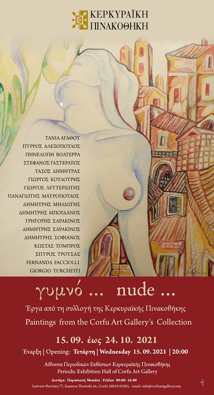 Συνεχίζεται έως τις 24/10 η έκθεση «γυμνό…» με έργα από τη Μόνιμη Συλλογή της Κερκυραϊκής Πινακοθήκης, τηρώντας όλα τα απαραίτητα υγειονομικά μέτρα. Η έκθεση είναι επισκέψιμη από Δευτέρα έως Παρασκευή 09:00-16:00.