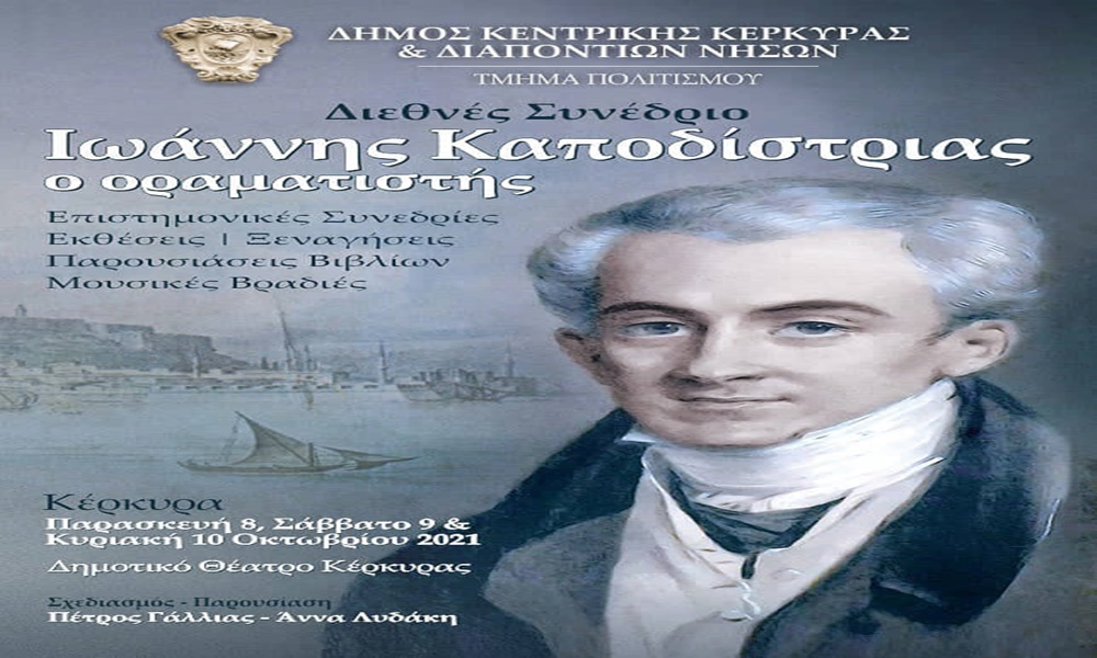 Ο Δήμος Κεντρικής Κέρκυρας και Διαποντίων Νήσων διοργανώνει επιστημονικό συνέδριο την Παρασκευή 8, το Σάββατο 9 και την Κυριακή 10 Οκτωβρίου, στην Κέρκυρα, με τίτλο:“Ιωάννης Καποδίστριας, ο οραματιστής.”