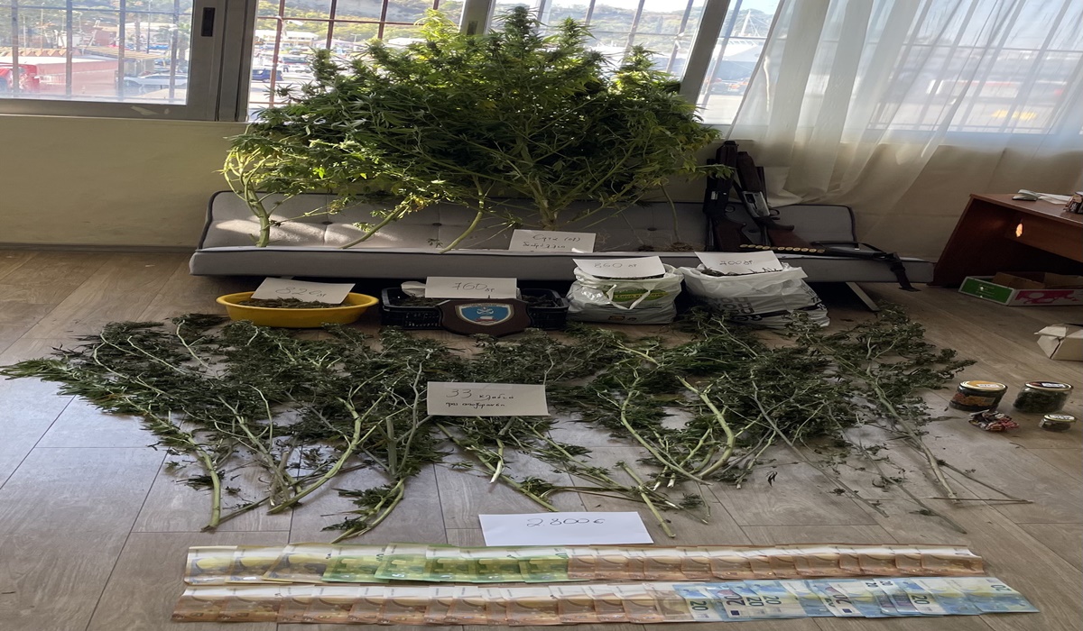 Εν συνεχεία, σε νομότυπη έρευνα που διενεργήθηκε, στην οικία που διέμενε ο 37χρονος, στο Περιβόλι Κέρκυρας, εντοπίστηκε ποσότητα ακατέργαστης κάνναβης, συνολικού μικτού βάρους επτακοσίων πενήντα εννέα γραμμαρίων (759,00γρ), καθώς και το χρηματικό ποσό των δυο χιλιάδων οκτακοσίων ευρώ (2.800€).
