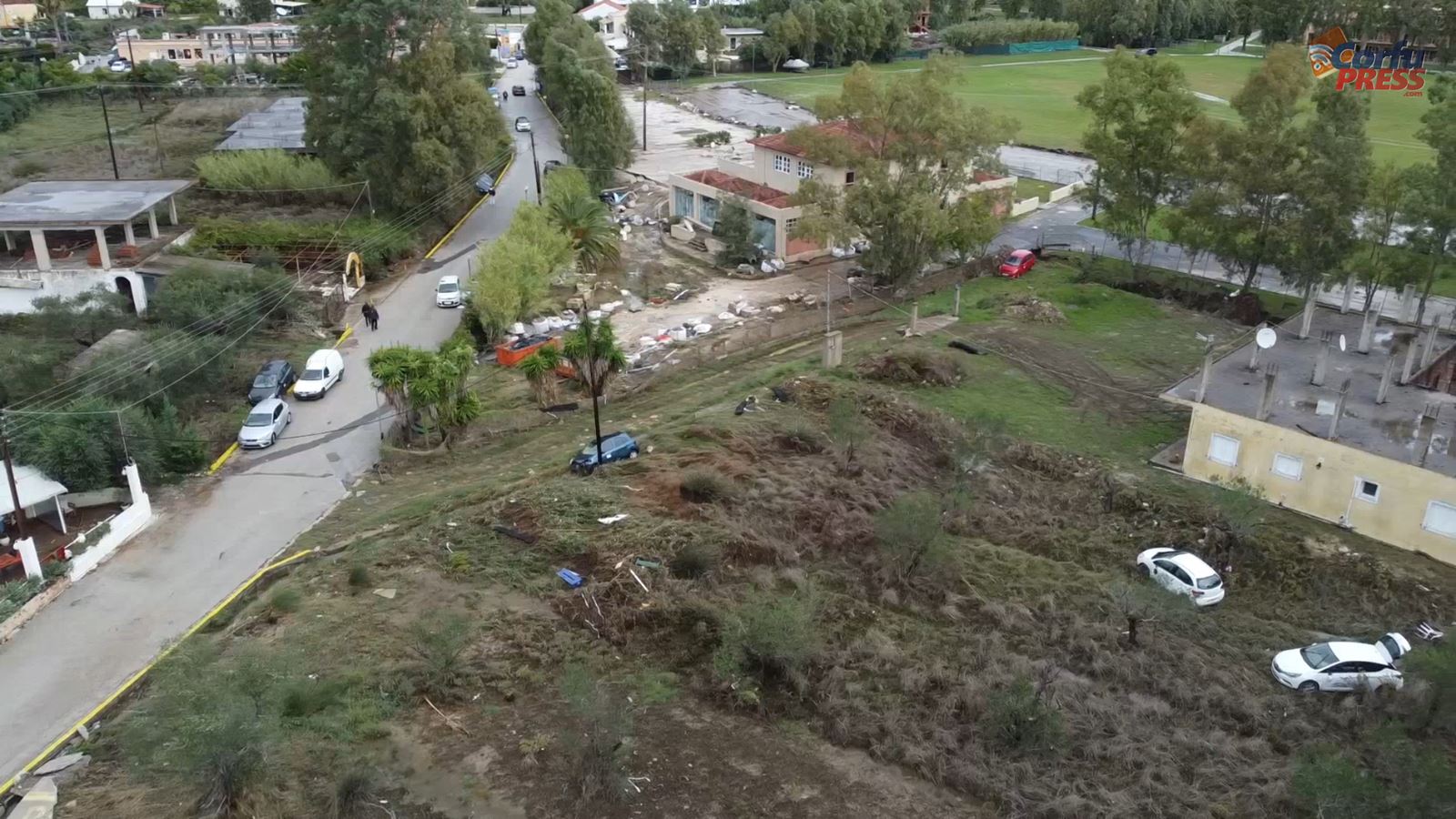Στον κόμβο των Μωραΐτικων, ορμητικός χείμαρρος κατέστρεψε εξοπλισμό ξενοδοχείων και εστιατορίων, διέλυσε εσωτερικούς χώρους επιχειρήσεων, “ξήλωσε” τεράστια κομμάτια ασφάλτου και τσιμέντων, παρέσυρε το ΑΤΜ της περιοχής και σκόρπισε στα γύρω κτήματα 50 (!) αυτοκίνητα και 30 μηχανές τύπου γουρούνας επιχείρησης rent-a-car!
