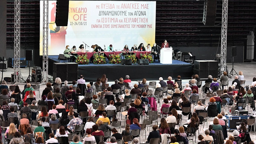 Χαιρετίζουμε θερμά τις εκατοντάδες αντιπροσώπους, καθώς και τις χιλιάδες γυναίκες των Συλλόγων και των Ομάδων που αποτελούν τη “φωνή” της ΟΓΕ σε κάθε γωνιά της χώρας. Με νέα ώθηση από τις διαδικασίες του Συνεδρίου τις καλούμε να πολλαπλασιάσουμε τις πρωτοβουλίες και τη δράση μας, να φωτίσουμε την αξία της αγωνιστικής στάσης ζωής, να εμπνεύσουμε περισσότερες γυναίκες να πάρουν τη θέση τους στις γραμμές του συλλογικού αγώνα.