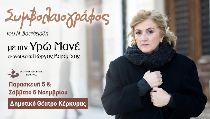 Στις 20 Οκτωβρίου 2010, ξεκίνησε το συναρπαστικό ταξίδι του ο εξαιρετικός μονόλογος «Συμβολαιογράφος» του Νίκου Βασιλειάδη, σε σκηνοθεσία Γιώργου Καραμίχου με την Υρώ Μανέ στην πιο συγκλονιστική ερμηνεία της καριέρας της. 11 χρόνια μετά, η τραγική κωμωδία που συγκίνησε, προβλημάτισε, αγαπήθηκε από το κοινό και απέσπασε διθυραμβικές κριτικές, έρχεται στο Δημοτικό Θέατρο Κέρκυρας για δύο επετειακές παραστάσεις, την Παρασκευή 5 και το Σάββατο 6 Νοεμβρίου.