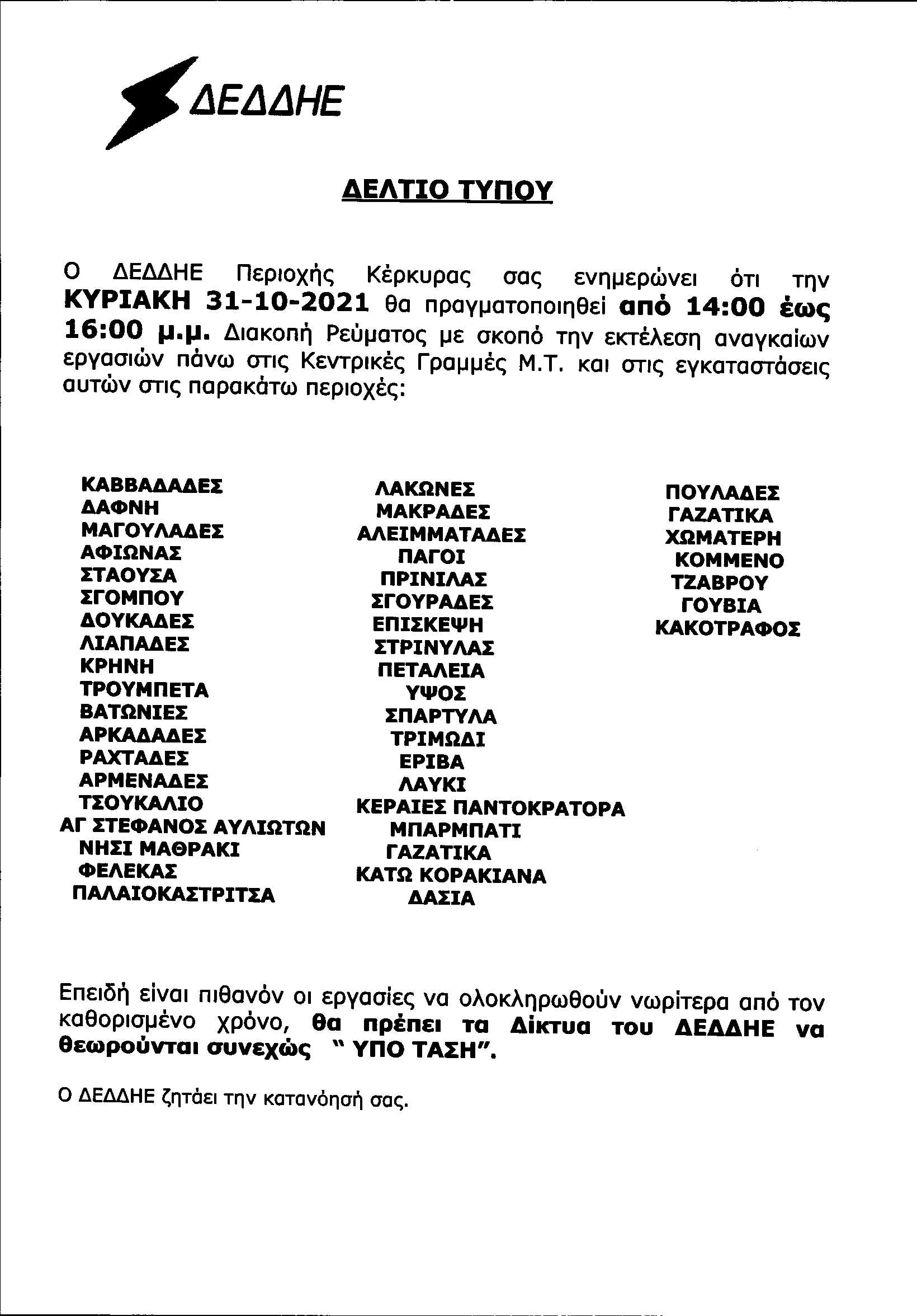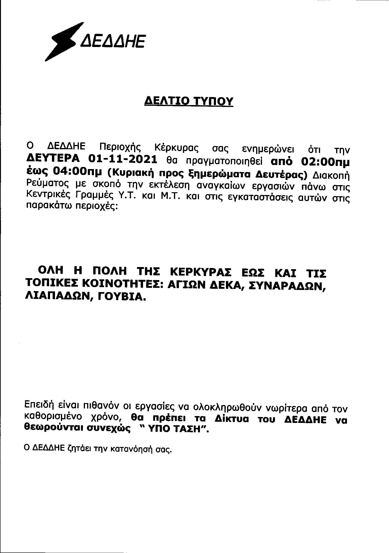 ΚΟΙΝΩΝΙΑΕΛΕΥΘΕΡΟΕΙΔΗΣΕΙΣ Διακοπές ρεύματος σε πολλές περιοχές της Κέρκυρας την Κυριακή και τη Δευτέρα Διακοπή ρεύματος σε πολλές περιοχές του νησιού θα πραγματοποιήσει ο ΔΕΔΔΗΕ την Κυριακή και τη Δευτέρα Last updated: 29/10/2021 10:33 CorfuPress.com Published: 29/10/2021 Share SHARE Διακοπή ρεύματος σε πολλές περιοχές του νησιού θα πραγματοποιήσει ο ΔΕΔΔΗΕ την Κυριακή και τη Δευτέρα Διακοπή ρεύματος τη Δευτέρα-Δείτε που Που θα γίνει διακοπή ρεύματος την Τετάρτη Που θα γίνει διακοπή ρεύματος την Τετάρτη Επιστολή Επιμελητηρίου προς ΔΕΔΔΗΕ για τις πολύωρες διακοπές ρεύματος Που θα γίνουν προγραμματισμένες διακοπές ρεύματος το διάστημα 23-25 Αυγούστου Share This Article Facebook Whatsapp Whatsapp Email Copy Link Print Previous Article Ο Σπύρου ενημερώθηκε για τα προβλήματα του Ιονίου Πανεπιστημίου Next Article Εμείς, αυτοί και ο αμίαντος Δεν υπάρχουν Σχόλια Δεν υπάρχουν Σχόλια Αφήστε μια απάντηση Ακύρωση απάντησηςΗ ηλ. διεύθυνση σας δεν δημοσιεύεται. Τα υποχρεωτικά πεδία σημειώνονται με *Σχόλιο * Όνομα * Email * Ιστότοπος Αποθήκευσε το όνομά μου, email, και τον ιστότοπο μου σε αυτόν τον πλοηγό για την επόμενη φορά που θα σχολιάσω. ΑναζήτησηΑναζήτησηRecent PostsΌλα τα μάτια στον Θοδωρή, τον καπετάνιο μας! Τη Δευτέρα 22 Σεπτεμβρίου γιορτάζει… Σαν Σήμερα 22/9: Τα σημαντικότερα γεγονότα… Η πρόγνωση του καιρού Έφηβοι Ιονίου: Με περίπατο, συνεχίζουν στο Rising Stars! Recent CommentsΧωρίς σχόλια για εμφάνιση.