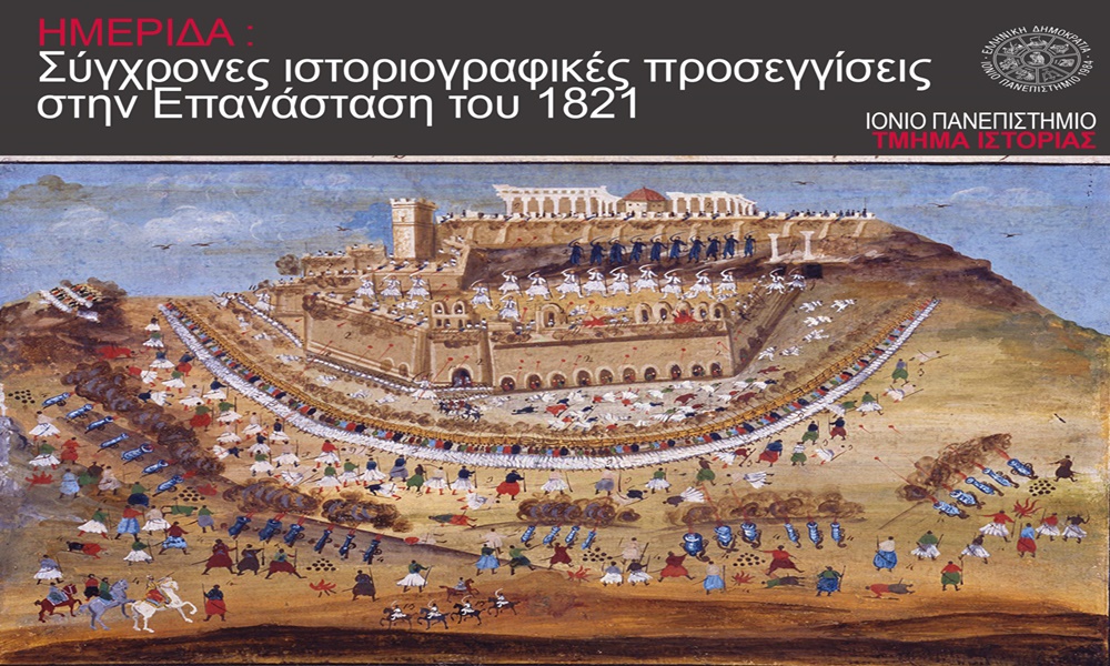 Το Τμήμα Ιστορίας του Ιονίου Πανεπιστημίου οργανώνει επιστημονική Ημερίδα με θέμα «Σύγχρονες ιστοριογραφικές προσεγγίσεις στην Επανάσταση του 1821», την Τετάρτη 10 Νοεμβρίου 2021, 17:30-21.00, με στόχο την ανάδειξη της συμβολής του στην ανανέωση της ιστοριογραφίας του Εικοσιένα. Οι ομιλητές ανήκουν σε διαφορετικές γενιές ιστορικών που διερευνούν την ιστορία του Αγώνα της Ελληνικής Ανεξαρτησίας και είτε υπηρετούν στο Τμήμα Ιστορίας είτε σε άλλα Ιδρύματα και συνεργάζονται μαζί του. Ομιλητές στην Ημερίδα θα είναι οι: