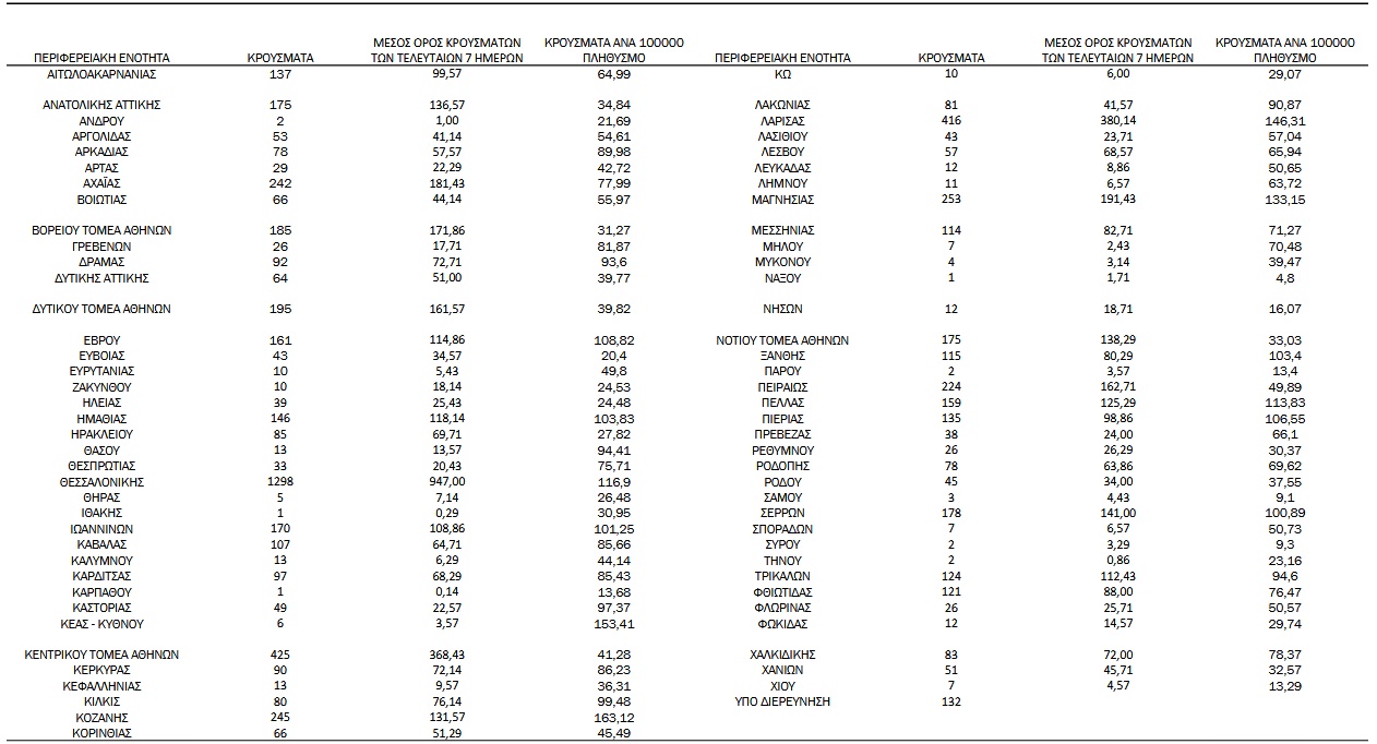 Αναλυτικά, η διασπορά των νέων κρουσμάτων ανά περιφερειακή ενότητα: