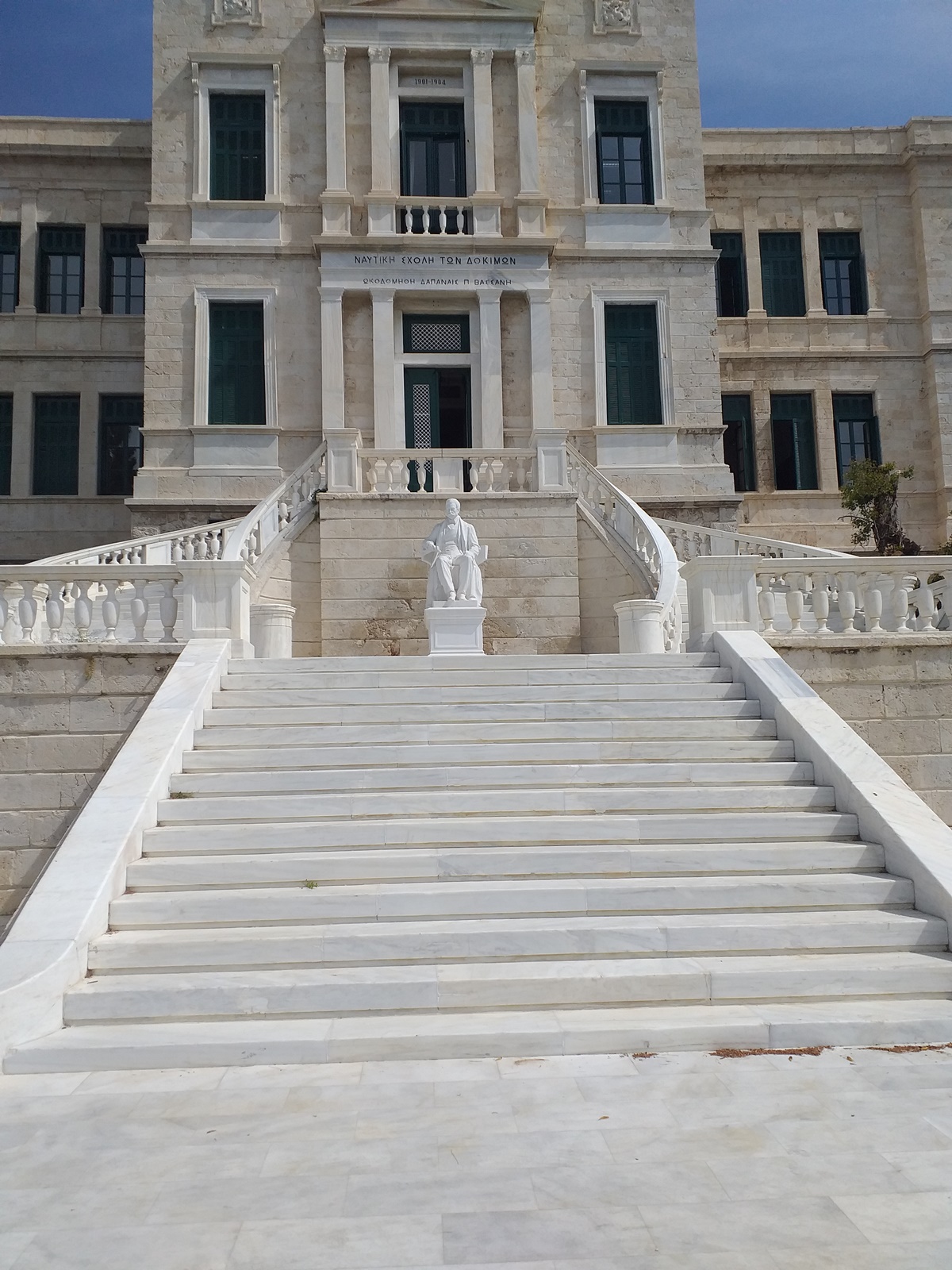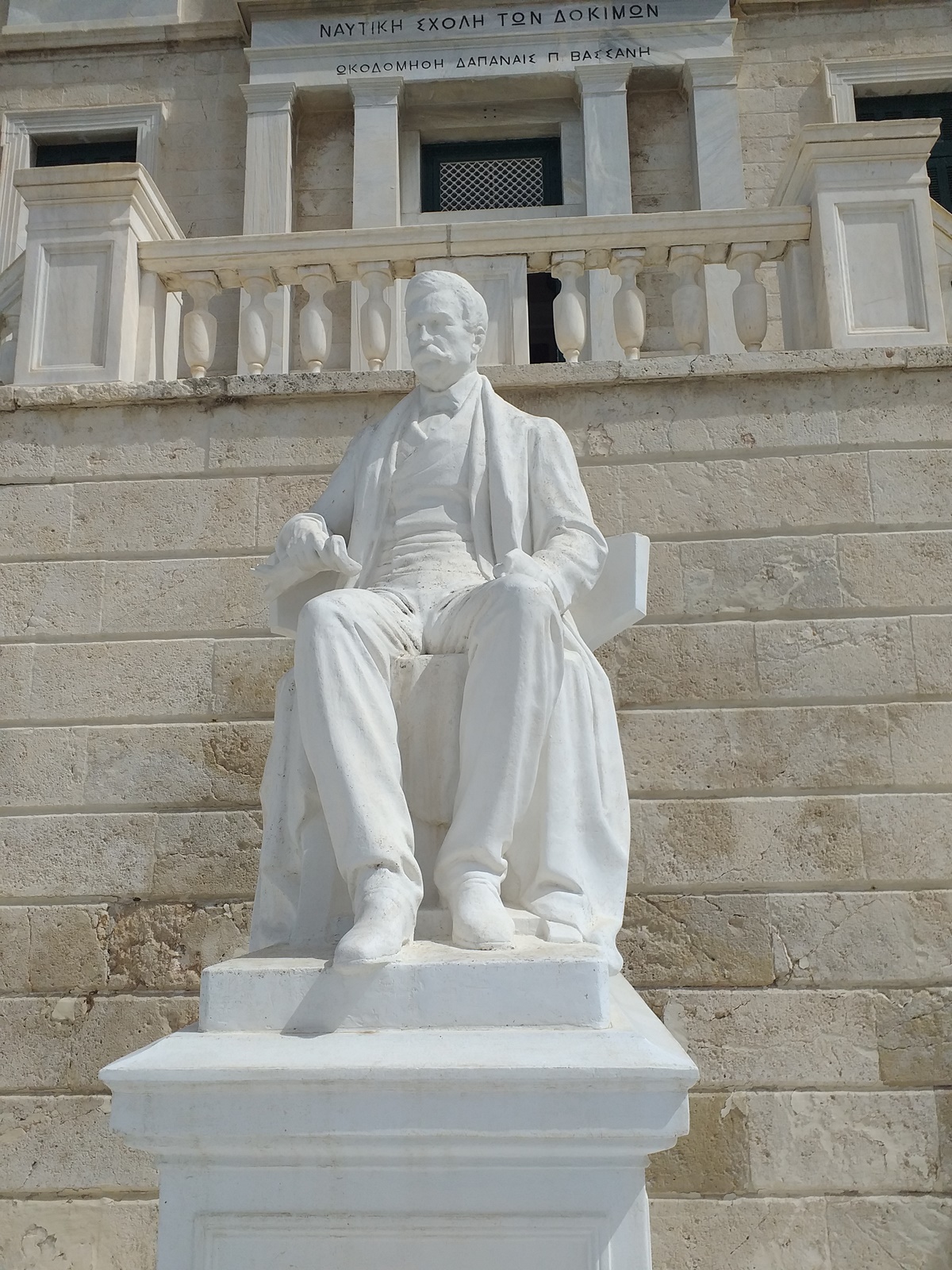 Ο καθιστός ανδριάντας του Παντελή ή Πανταζή Βασσάνου (Πορταριά Πηλίου 1830 – Τάντα Αιγύπτου 1892) , ευεργέτη της Σχολής των Ναυτικών Δοκίμων, * αποτελεί το πλέον εμβληματικό και παλαιό από τα γλυπτά , που κοσμούν τους υπαίθριους χώρους της εν λόγω Σχολής. Στραμμένο προς τη θάλασσα, το έργο δεσπόζει στο μέσο της μεγαλοπρεπούς κλίμακας, που βρίσκεται στην κεντρική πρόσοψη του κτιρίου της διοίκησης, το οποίο φέρει τιμητικά και το όνομά του, Βασσάνειο Μέγαρο.