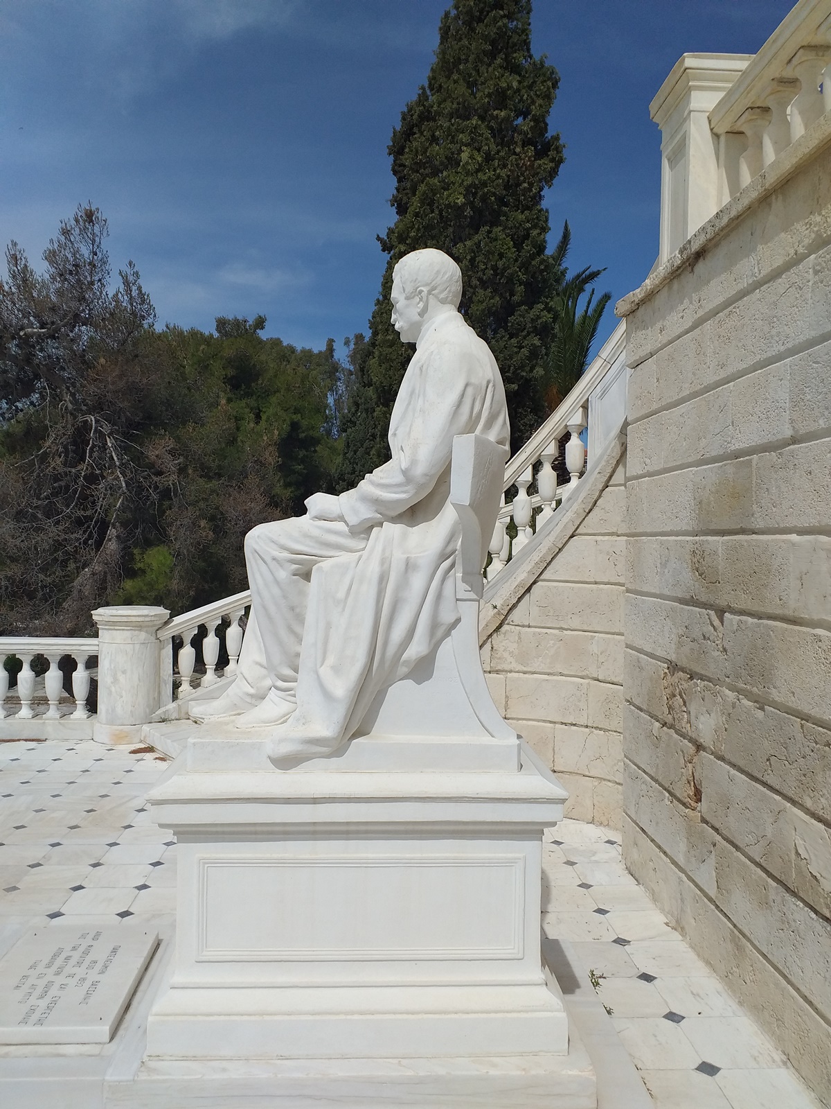 Αξιον ιδιαίτερης μνείας είναι επιπλέον ότι, εκτός από φιλοτέχνημα, που έγινε για να διατηρεί εσαεί ζωντανή τη μνήμη της τιμώμενης προσωπικότητας και την ευγνωμοσύνη του εν λόγω ιδρύματος προς αυτήν, το γλυπτό αποκτά παράλληλα και χαρακτήρα επιτύμβιου μνημείου, αν λάβουμε υπόψη το γεγονός ότι κάτω από το βάθρο βρίσκονται φυλαγμένα σε θήκη τα οστά του ευεργέτη. *