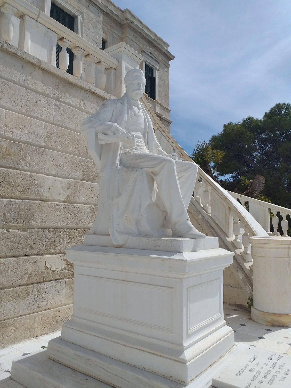 Συνιστώντας επιτυχή συμπόρευση ρεαλιστικών τάσεων με στοιχεία κλασικής και κλασικιστικής προέλευσης, το έργο προεκτείνει, ως τις αρχές του 20ού αιώνα, ευρέως διαδεδομένους τύπους της ευρωπα’ι’κής ανδριαντοποιίας , οι οποίοι εισήχθησαν στη νεοελληνική μνημειακή γλυπτική από τους Βαυαρούς , τα μετεπαναστατικά χρόνια της βασιλείας του Οθωνα. Φιλοτεχνημένος, τέλος, από σμιλεύον χέρι απαράμιλλης δεινότητας και σε χρόνο της δημιουργικής του ακμής, ο παρών ανδριάντας του ” Μαρμαροφάγου ” γλύπτη, όπως έχει αποκαλέσει τον Μπονάνο ο καθηγητής Στέλιος Λυδάκης, * εντάσσεται επάξια στη χορεία των εξεχουσών καθιστών μορφών, που η νεοελληνική μνημειακή γλυπτική τέχνη απαθανάτισε και έχει να επιδεικνύει περήφανα στα διακόσια σχεδόν χρόνια ζωής, που ήδη της αναλογούν.