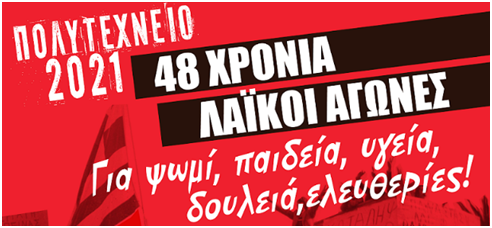 Τιμάμε τον ηρωικό αγώνα της νεολαίας και του λαού μας πριν 48 χρόνια συνεχίζοντας την πάλη για τα ανεκπλήρωτα ιδανικά τους διεκδικώντας :