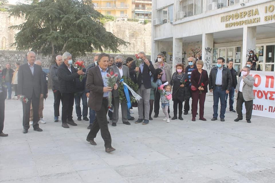 Στο μνημείο για τους πεσόντες του Πολυτεχνείου, στο προαύλιο του κτιρίου της πρ. Νομαρχίας, μετέβη σήμερα το πρωί ο βουλευτής Κέρκυρας ΣΥΡΙΖΑ-Π.Σ. Αλέξανδρος Αυλωνίτης, όπου μαζί με κλιμάκιο της Ν.Ε. Κέρκυρας του ΣΥΡΙΖΑ-Π.Σ. και της νεολαίας του κόμματος, κατέθεσαν λουλούδια, αποτίοντας φόρο τιμής για την επέτειο της εξέγερσης του Πολυτεχνείου.