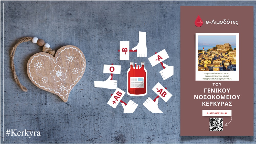 Από τις 16/11/2021 στο e-Αιμοδότες περιλαμβάνεται και το Γενικό Νοσοκομείο Κέρκυρας.