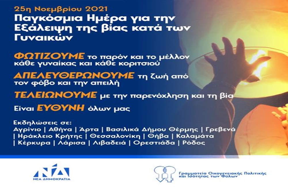 Εκδήλωση της ΔΕΕΠ της ΝΔ στην Κέρκυρα την Πέμπτη 25 Νοεμβρίου με θέμα την εξάλειψη της βίας κατά των γυναικών