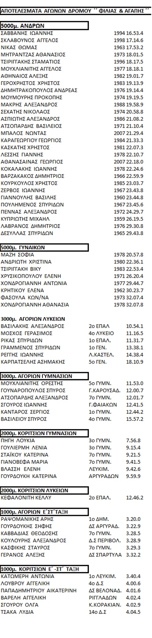 Επίσης ευχαριστεί θερμά τους χορηγούς των Αγώνων , το “ΚΔΑΠ ότι Αγαπώ”, το Χώριο Εμπόριο Φρούτων & λαχανικών , το Φωτοτυπικό Κέντρο Κώστας Νάκος , και το Φρ. A.Spanou School of English .