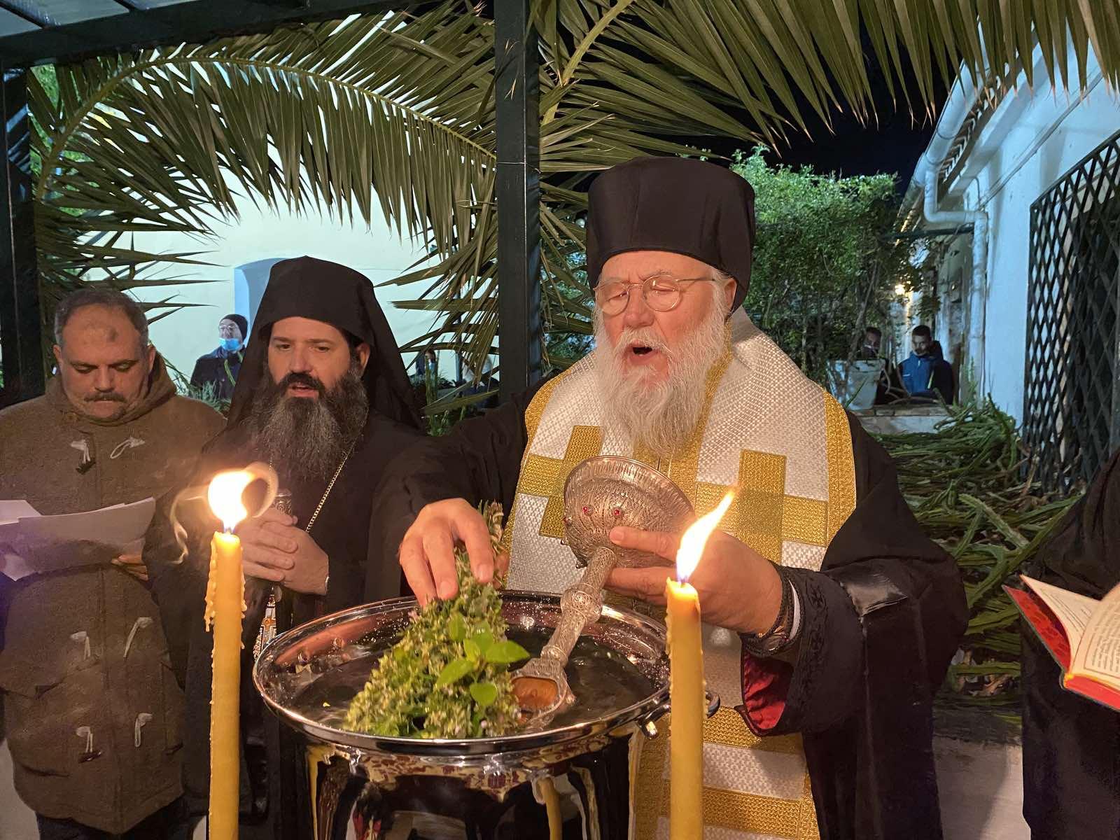 Ο Σεβασμιώτατος τέλεσε προ της εισόδου τον καθιερωμένο αγιασμό και στην συνέχεια τις ευχές των θυρανοιξίων. Αφού αγίασε το ιερό παρεκκλήσιο απηύθυνε λόγους πατρικούς προς τον ηγούμενο και την αδελφότητα, από την ζωή του Οσίου Πορφυρίου, τον οποίο μάλιστα ο ίδιος είχε την ευλογία να γνωρίσει στη ζωή των φοιτητικών χρόνων του. Στη συνέχεια οι πατέρες τις μονής θα τελούσαν ολονύκτια αγρυπνία με την ευκαιρία της εορτής του Οσίου Πορφυρίου. Ο Σεβασμιώτατος ευχήθηκε στους ευλαβείς προσκυνητές της Ιεράς Μονής, καλά Χριστούγεννα.