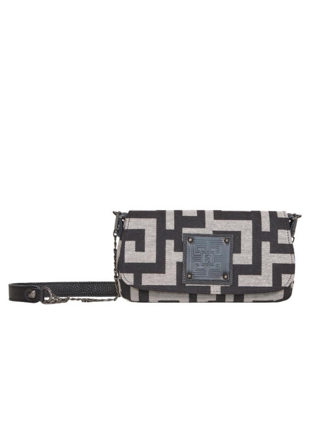 Ένα άλλο πολύ αγαπημένο brand με επώνυμες τσάντες, οι Ames bags by Lia Manjorou, αντλούν έμπνευση από τα patterns της μινωικής εποχής και είναι τυπωμένες με το χαρακτηριστικό σχέδιο ορθογώνιων λαβυρίνθων. Ames άλλωστε, στην μινωική διάλεκτο σήμαινε λαβύρινθος. Ελληνικής κατασκευής, με κύριο υλικό το ζακάρ ύφασμα σε συνδυασμό με δέρμα και μέταλλο, οι συγκεκριμένες τσάντες έχουν γίνει ανάρπαστες, αφού συνδυάζουν τέλεια το αρχαϊκό με το ροκ στοιχείο, δίνοντας ένα εντυπωσιακό αποτέλεσμα που φοριέται πολύ. Κάθε τσάντα έχει ονομασία από ελληνικές λέξεις (Tharros, Logos, Deos) και μπορούν να υποστηρίξουν εξίσου πρωινές και βραδινές εμφανίσεις.