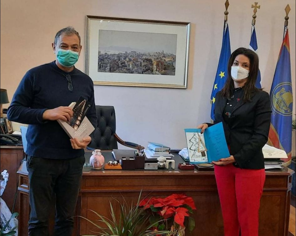 Η Δήμαρχος ανταπέδωσε τις ευχές και προσέφερε το βιβλίο “200 χρόνια από την εγκατάσταση των εφοριών της φιλικής εταιρείας στην Επτάνησο” για την βιβλιοθήκη του σχολείου, με αφιέρωση σε όλους τους μαθητές και τους καθηγητές.