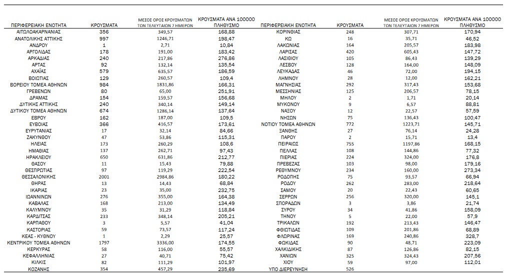 Αναλυτικα η διασπορά των νέων κρουσμάτων ανά περιφερειακή ενότητα: