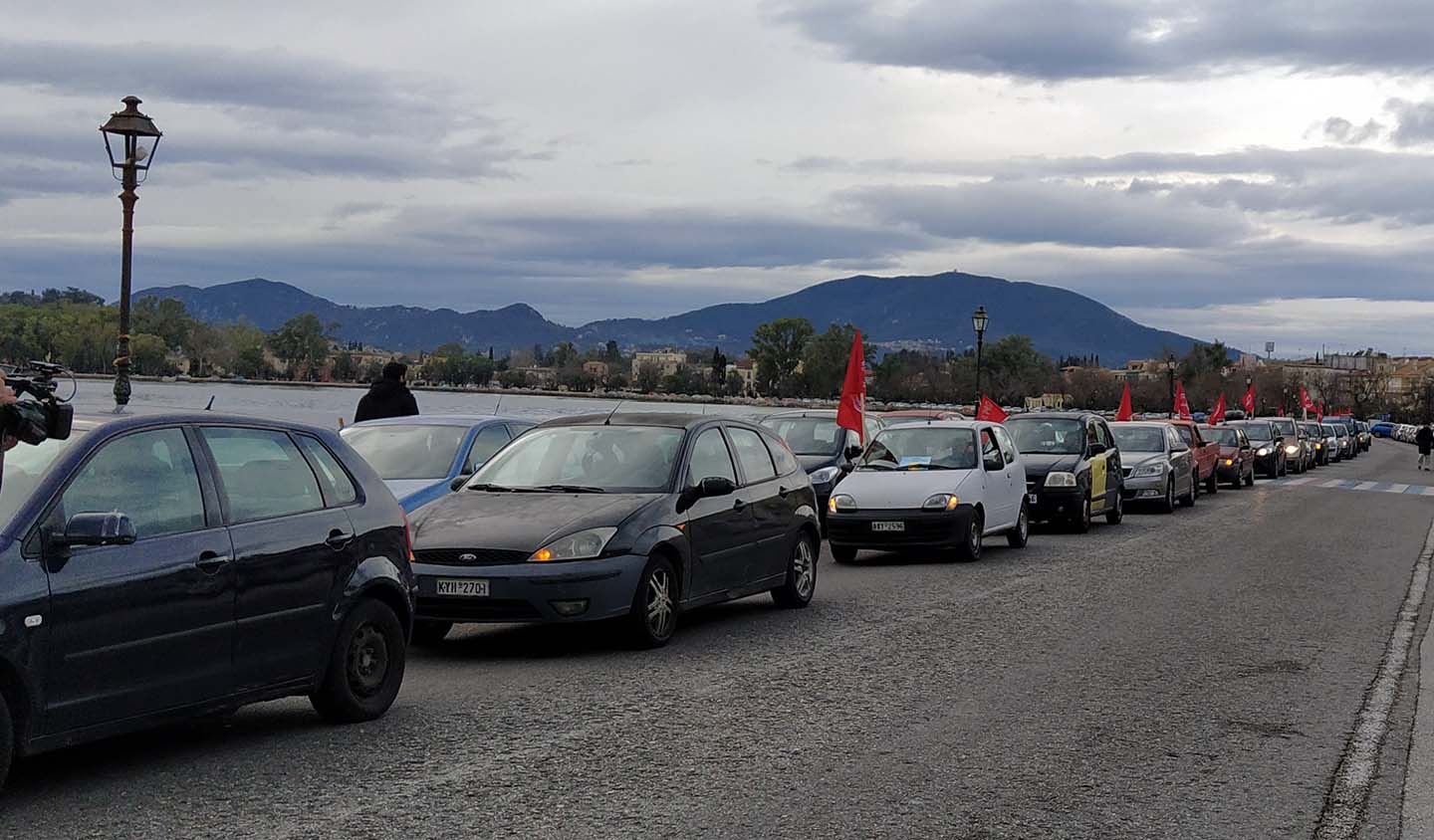 Με δεκάδες αυτοκίνητα αλλά και μοτοσικλέτες, οι διαδηλωτές διέσχισαν κεντρικούς δρόμους με κορναρίσματα και σημαίες.