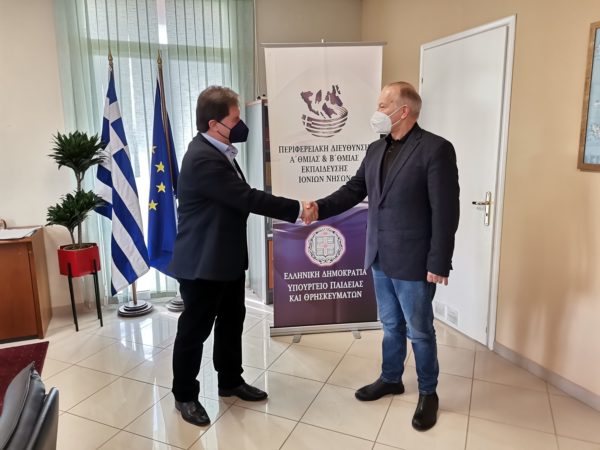 Την Τετάρτη πραγματοποιήθηκε συνάντηση στα γραφεία της Περιφερειακής Διεύθυνσης Πρωτοβάθμιας και Δευτεροβάθμιας Εκπαίδευσης Ιονίων Νήσων μεταξύ του βουλευτή Κέρκυρας Στέφανου Γκίκα και του Περιφερειακού Διευθυντή Πέτρου Αγγελόπουλου.