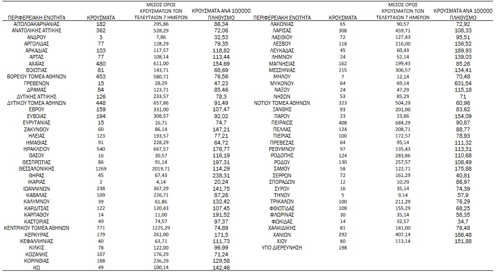 Αναλυτικά, η διασπορά των νέων κρουσμάτων ανά περιφερειακή ενότητα: