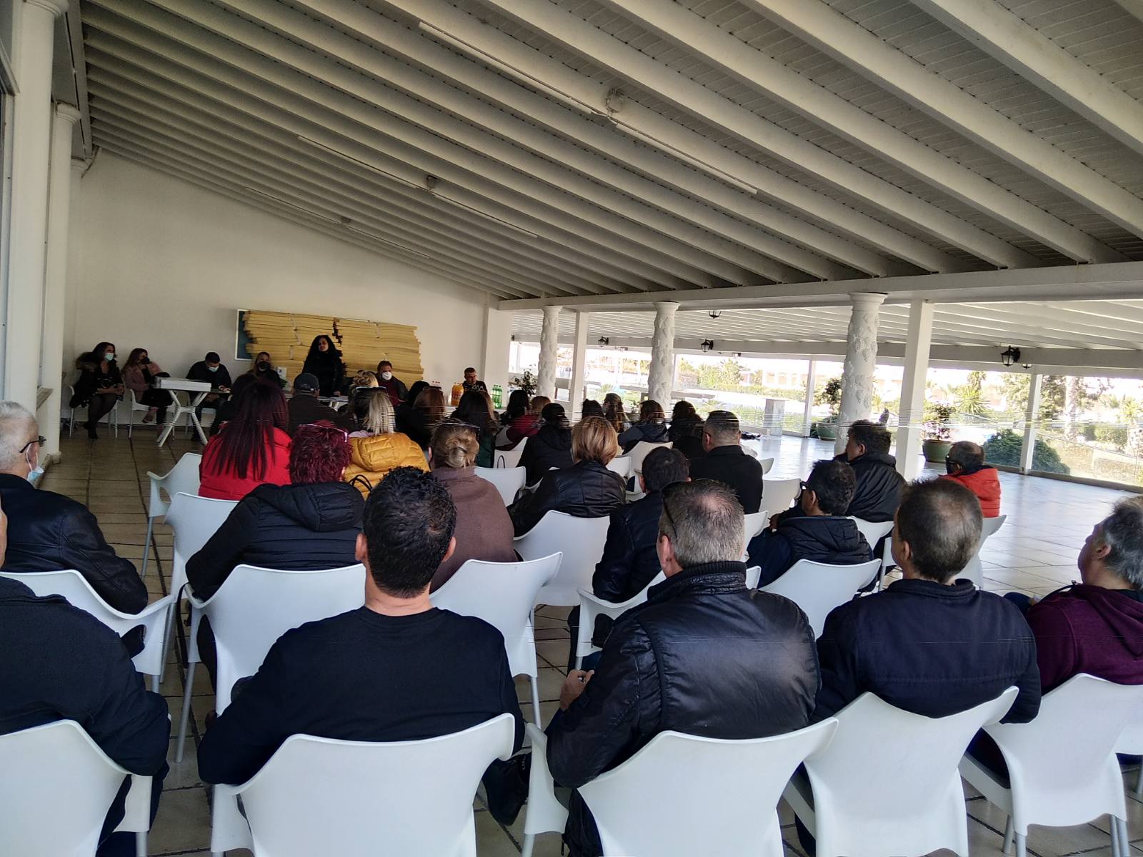 Στην συνέχεια, πήρε τον λόγο ο Πρόεδρος του κλάδικου συνδικάτου και του Εργατικού Κέντρου, Σ. Πελάης, ο οποίος κάλεσε τους εργαζόμενους να συμβάλλουν ο καθένας με τις δυνάμεις του για την επιτυχία του μεγάλου συλλαλητηρίου στις 26 Φλεβάρη, 11 το πρωί, στη πρώην Νομαρχία, για την εξασφάλιση ικανοποιητικού εισοδήματος και τη διεκδίκηση μέτρων προστασίας των λαϊκών στρωμάτων από την ακρίβεια και τις συνέπειες της πανδημίας και κατέληξε λέγοντας «…στις 26 έχουμε μια μεγάλη ευκαιρία να διεκδικήσουμε παράταση του επιδόματος ανεργίας και να στείλουμε μήνυμα στην εργοδοσία ενόψει της νέας σεζόν ότι δεν μπορεί να παίζει με τον κόπο και τα δικαιώματα μας, ότι είμαστε ισχυροί και αποφασισμένοι να απαιτήσουμε ότι μας ανήκει…»