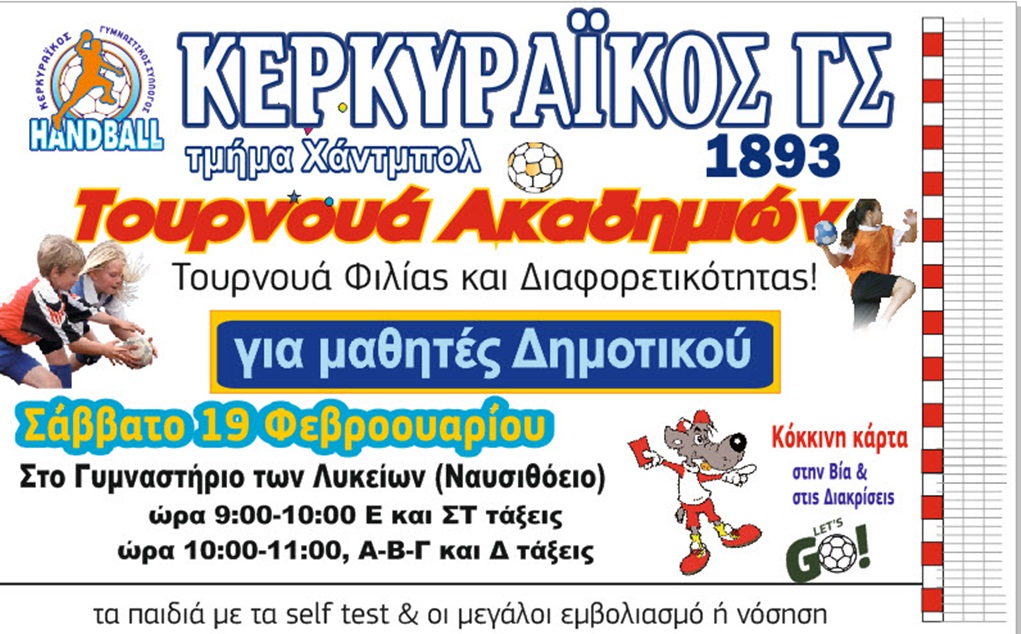 Τουρνουά Φιλίας και Διαφορετικότητας διοργανώνει το Σάββατο 19 Φεβρουαρίου το τμήμα Χάντμπολ του Κερκυραϊκού ΓΣ.