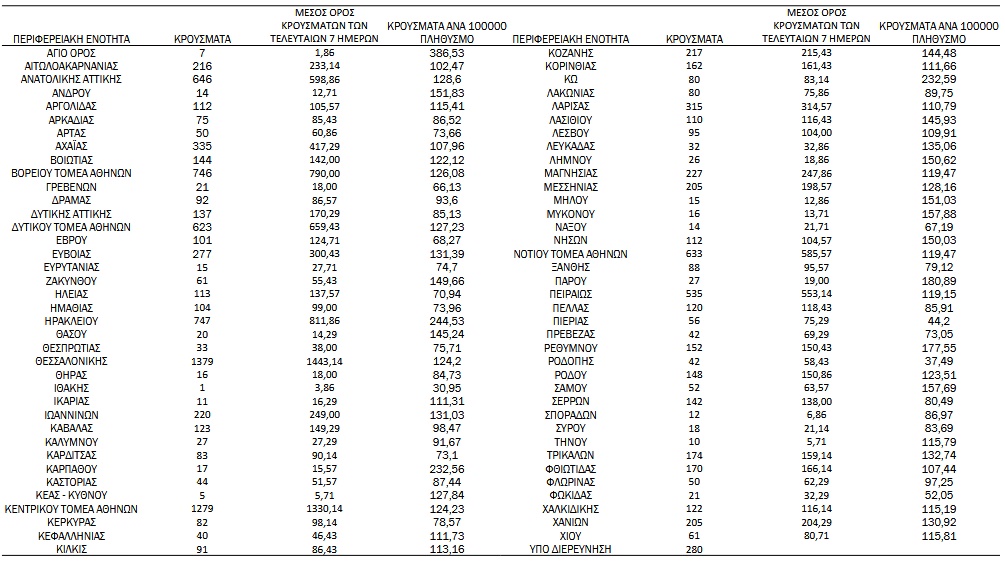 Αναλυτικά, η διασπορά των νέων κρουσμάτων ανά περιφερειακή ενότητα: