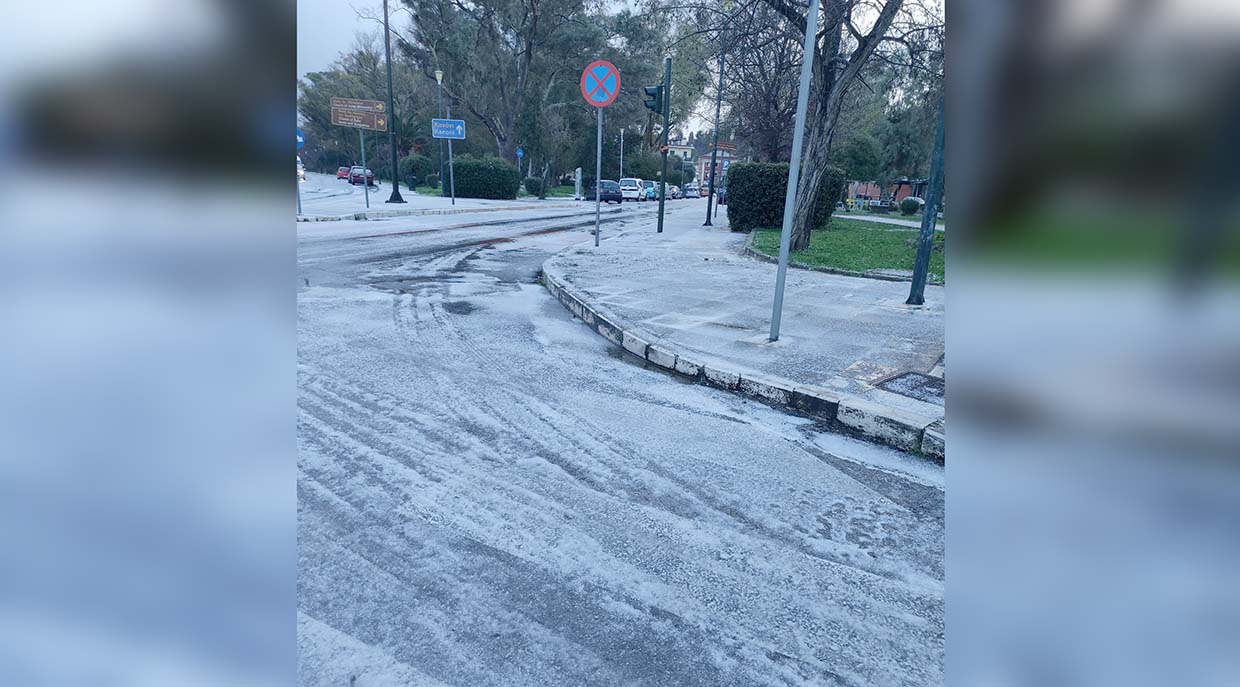 Σε πολλά σημεία όπως στη Γαρίτσα, στα Τρία Γεφύρια αλλά και περιμετρικά της πόλης οι δρόμοι «άσπρισαν» λόγω του χαλαζιού, κάνοντας τη διέλευση πεζών και οχημάτων προβληματική και επικίνδυνη αν δεν επιδειχθεί μεγάλη προσοχή.