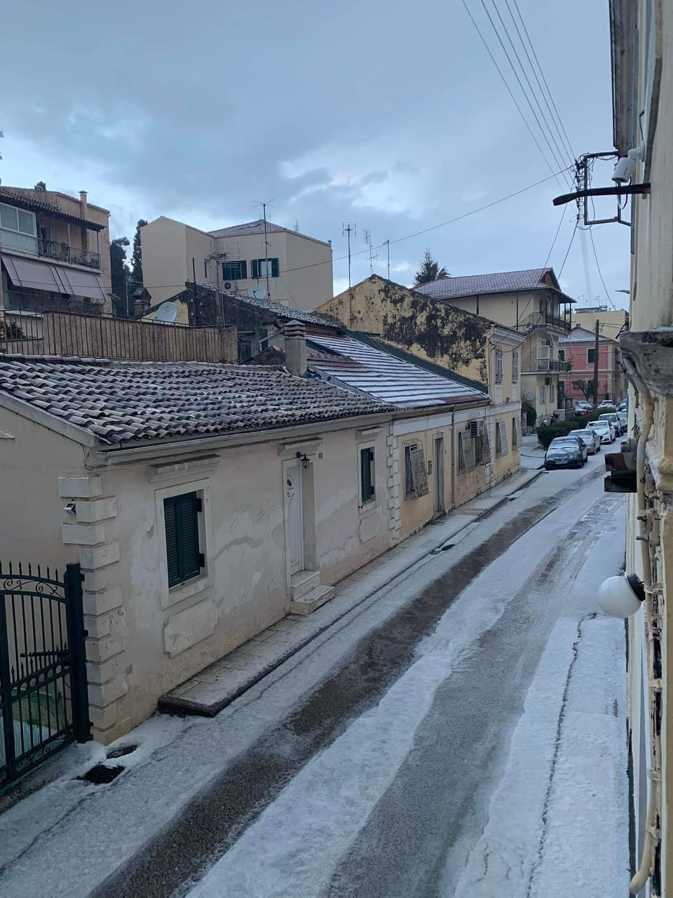 Έντονη χαλαζόπτωση σημειώθηκε σε αρκετά σημεία της Κέρκυρας, ακόμα και στο κέντρο της πόλη της Κέρκυρας σήμερα το πρωί, μαζί με την (όχι ισχυρή) βροχή.