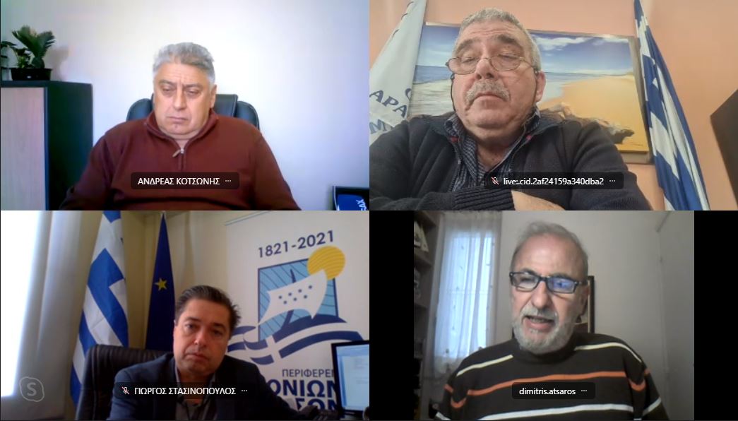 Με τους Προέδρους των Ομοσπονδιών Ενοικιαζομένων Δωματίων & Διαμερισμάτων Ιονίων Νήσων είχε τηλεδιάσκεψη, ο Αντιπεριφερειάρχης Επιχειρηματικότητας & Ανταγωνιστικότητας Γιώργος Στασινόπουλος.