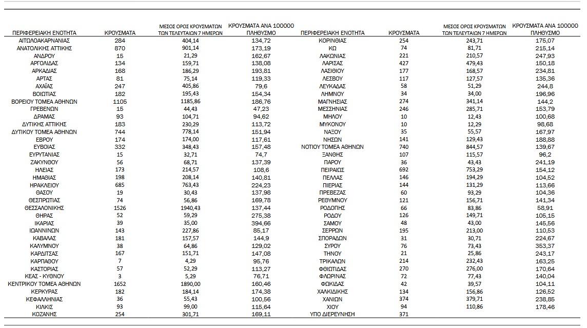 Αναλυτικά, η διασπορά των νέων κρουσμάτων ανά περιφερειακή ενότητα: