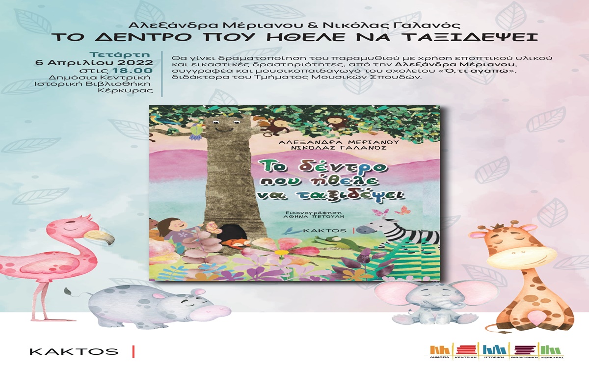 Την Τετάρτη 6 Απριλίου 2022, στις 18.00, θα έχουμε τη μεγάλη χαρά να γιορτάσουμε την Παγκόσμια Ημέρα Παιδικού Βιβλίου παρέα με τη συγγραφέα και μουσικοπαιδαγωγό Δρ. Αλεξάνδρα Μέριανου με αφορμή το νέο βιβλίο που έγραψε με τον οικονομολόγο και μουσικό Νικόλα Γαλανό “Το δέντρο που ήθελε να ταξιδέψει”.